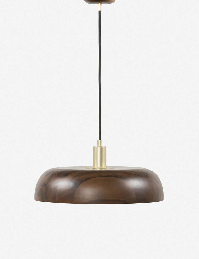 Sleek, understated, and endlessly stylishβthis pendant will transform your overhead lighting look. Pairing polished acacia wood with an antique brass fnish, this hanging light is perfect alone or in multiples for a signature lighting style.