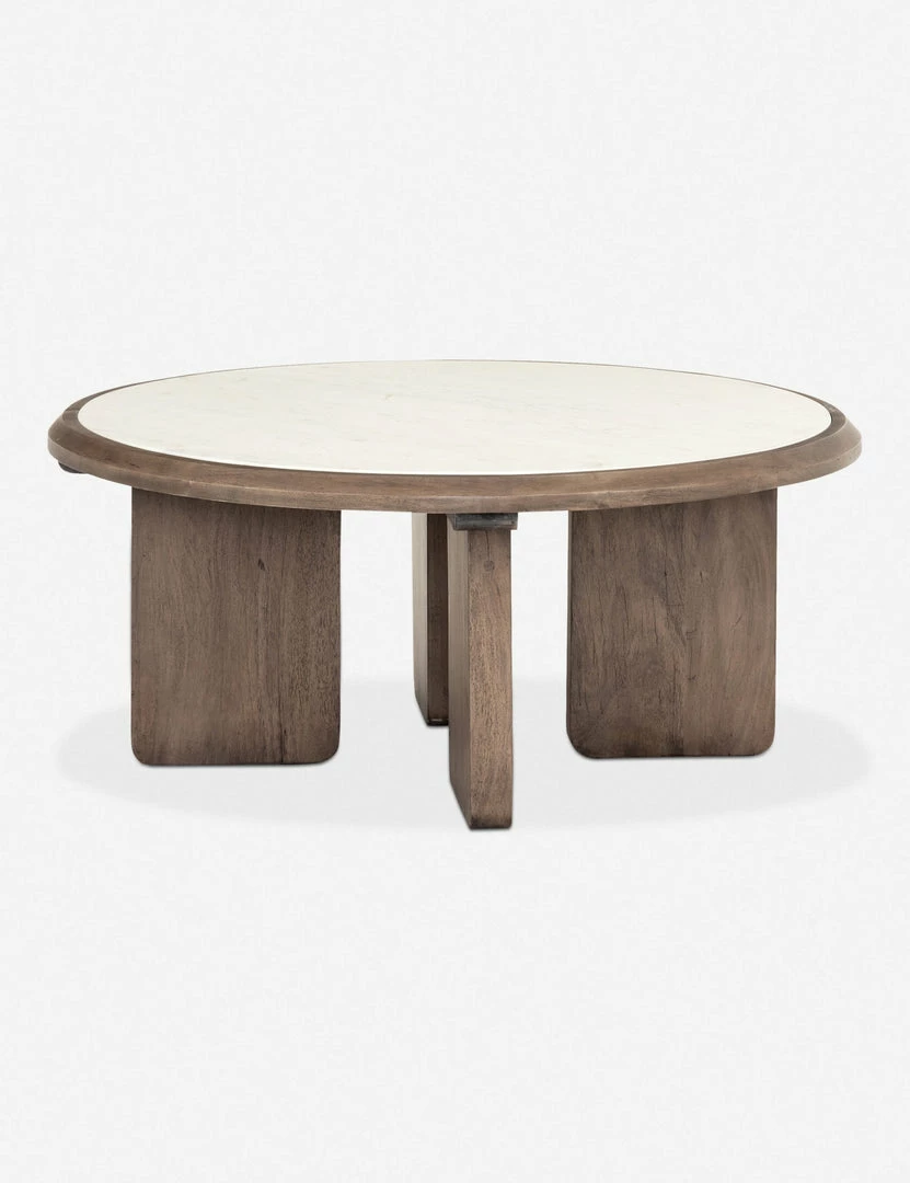 Smooth white marble and reclaimed wood blend together for a look that is casual, yet elevated. The clean, rounded shape makes for a striking statement in a living room. Plus, we love the sturdy, wide-legged base.