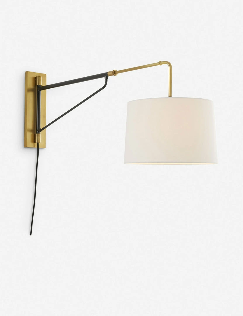 Perfect for bedrooms, this stylish upgrade brightens your bedside with sleek angles and traditional design elements, like a small linen shade for a softer glow. This two-tone sconce pivots to point the light where you need it most!
