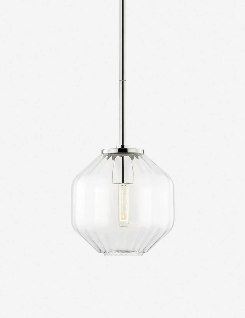 A clear pleated glass shade and streamlined design offer up radiant lighting with timeless sophistication for this ceiling fixture. Its polished nickel finish glints with understated elegance, perfect for an added touch of overhead lighting in an airy, transitional space.