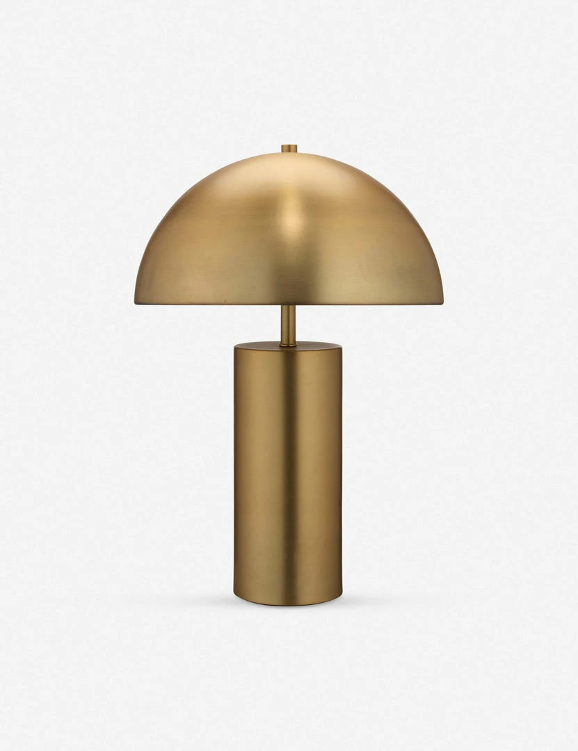 Sleek and lustrous, this streamlined table lamp features a dome shade and antique brass finish. Whether polishing a moody living room look or furnishing a home office with a luxe accent, this lamp provides a warm, modern appeal that will elevate your space.