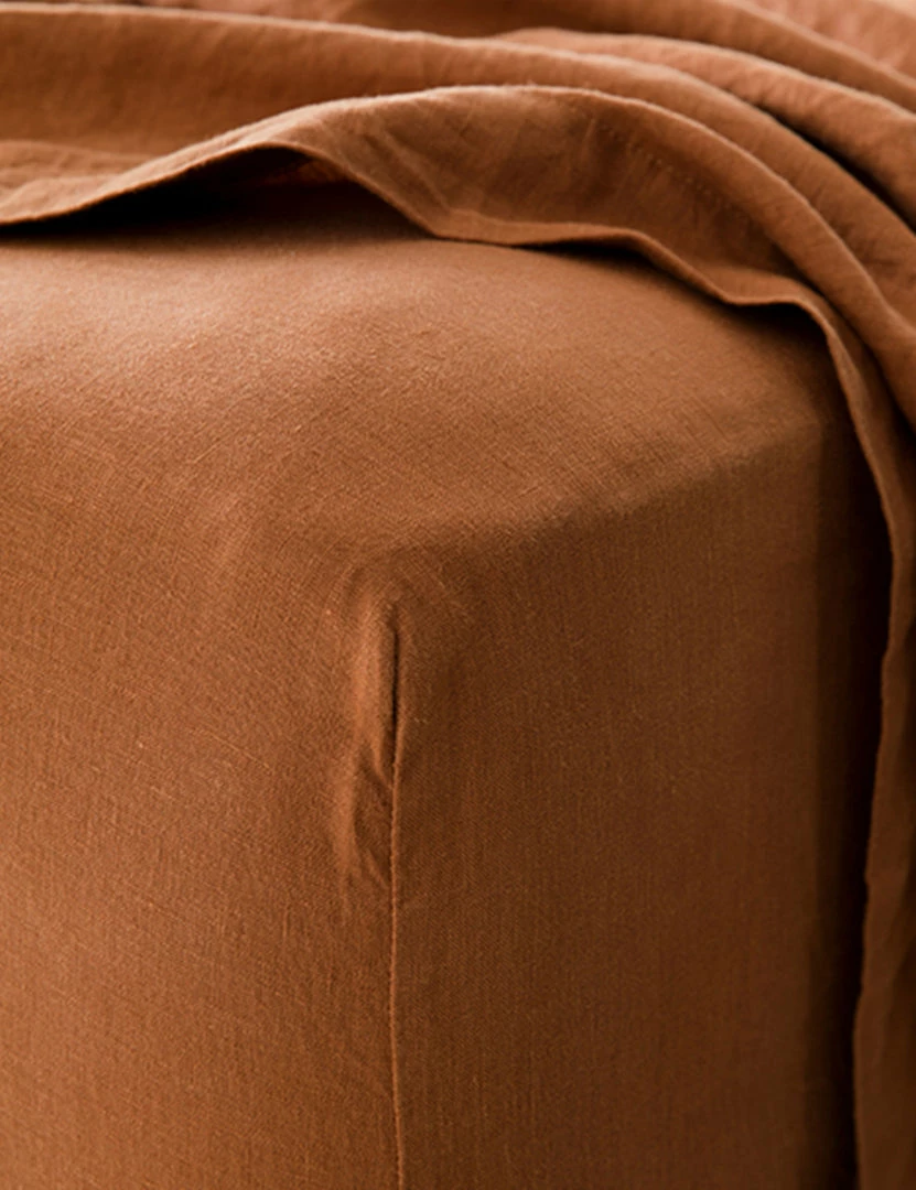 In a rich, earthy bluestone shade, this fitted sheet offers up effortless style for laid-back bedrooms. The natural texture of the linen adds to the casual appeal, making your space feel relaxed and refreshed in an instant.