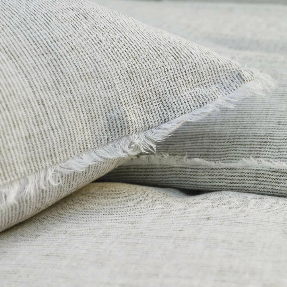 Extra long and perfect for side sleepers or snuggling, this pillow features a heathered fabric with subtle texture and frayed edges for unexpected detail.