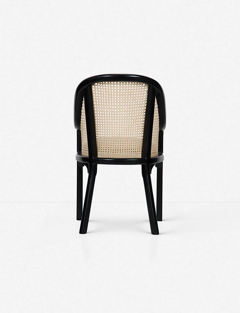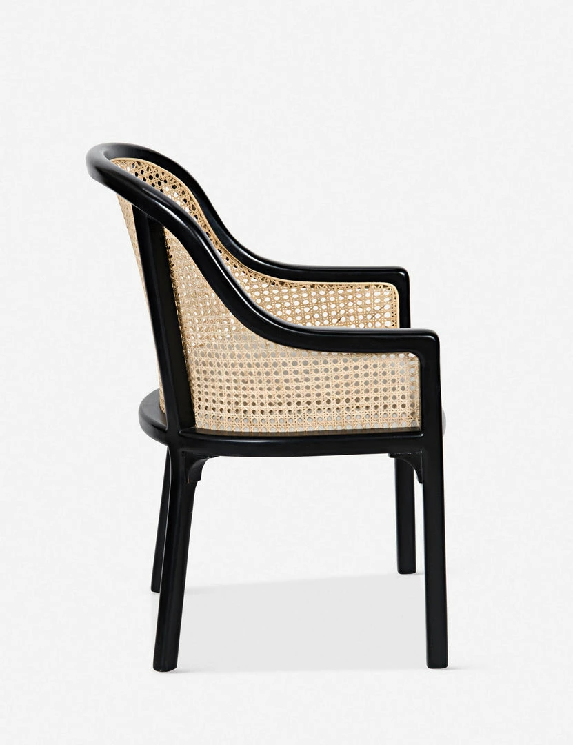 Classic design meets contemporary style with the Loreana chair’s hand-rubbed black frame and natural rattan-woven detailing. Angled back legs give it a more modern feel.
