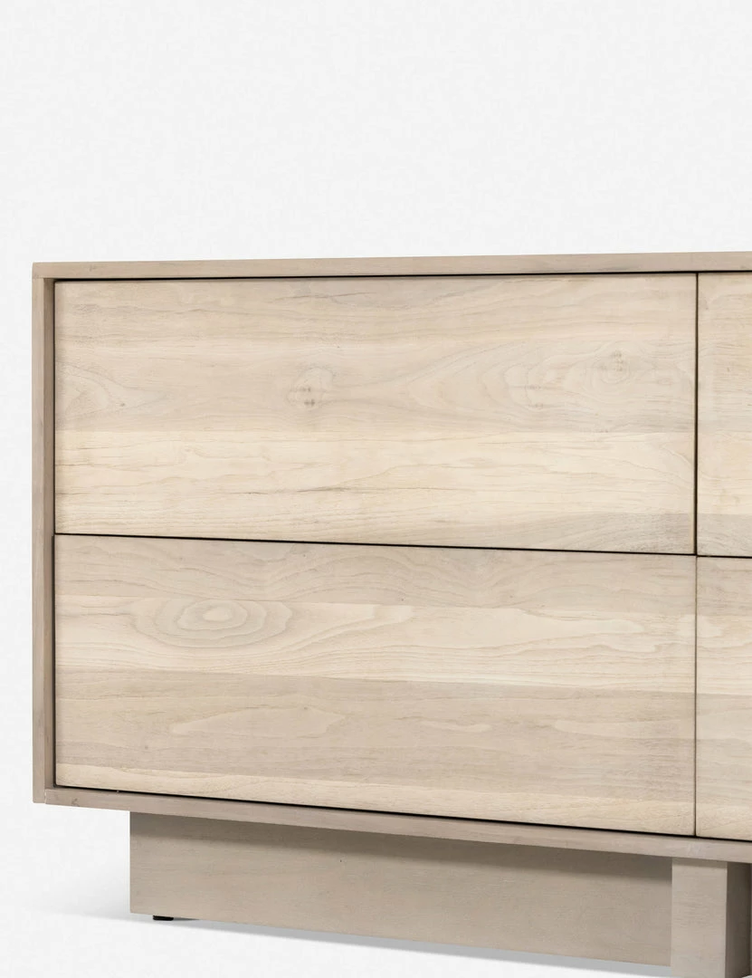 This clean-lined dresser is clad in a beautiful ashen walnut veneer for understated appeal with plenty of versatilility. The plinth base offers this elemental design with a floating balance that complements the hidden push-latch hardware with a seamless modern tone.