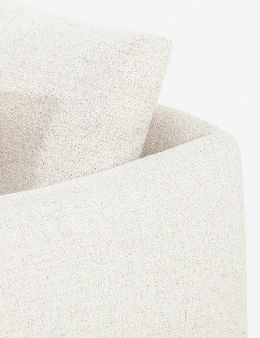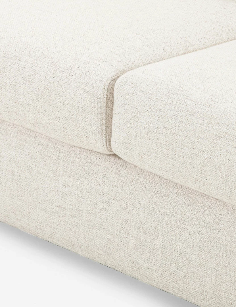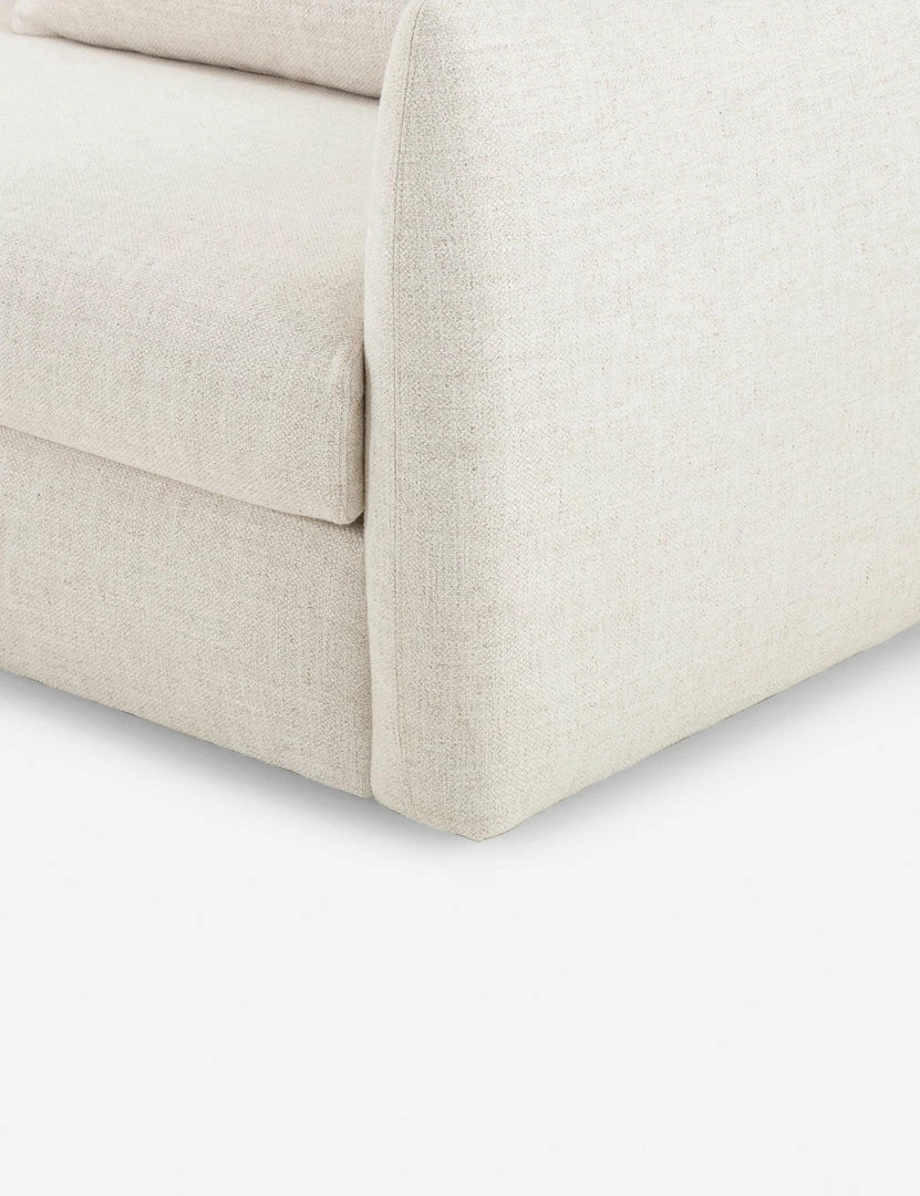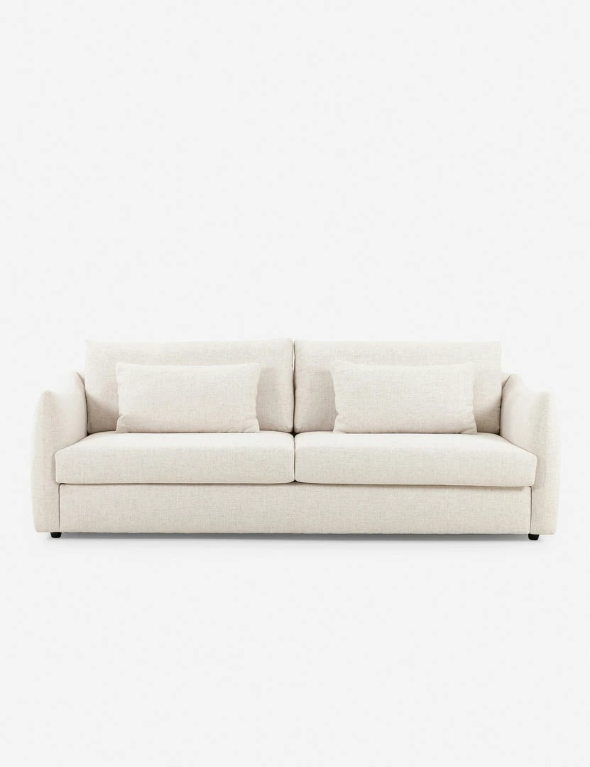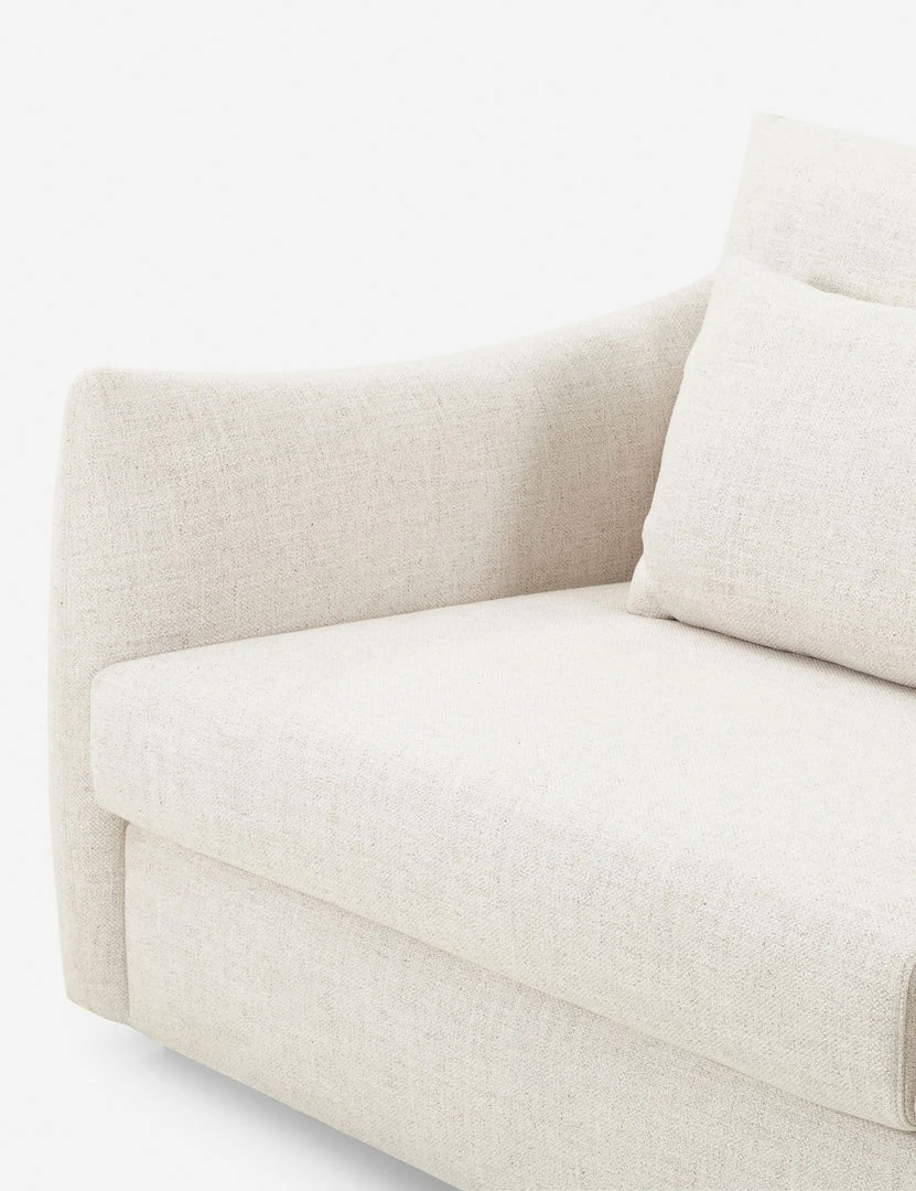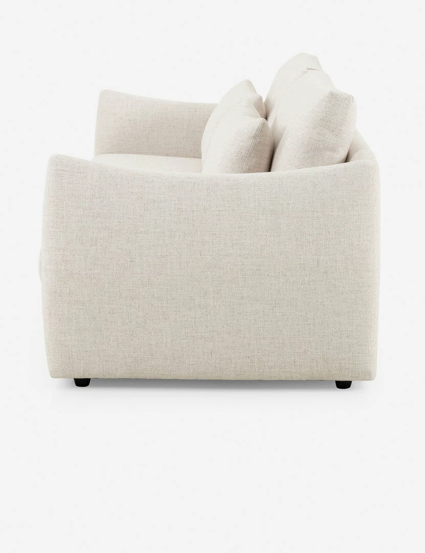 Thoughtfully contoured lines and scalloped sides lend this sofa an inviting silhouette. Its light tone and soft, durable fabric make it an ideal addition to a fresh, transitional space. Style it with organic textures and a natural fiber throw for a cozy living room sofa.