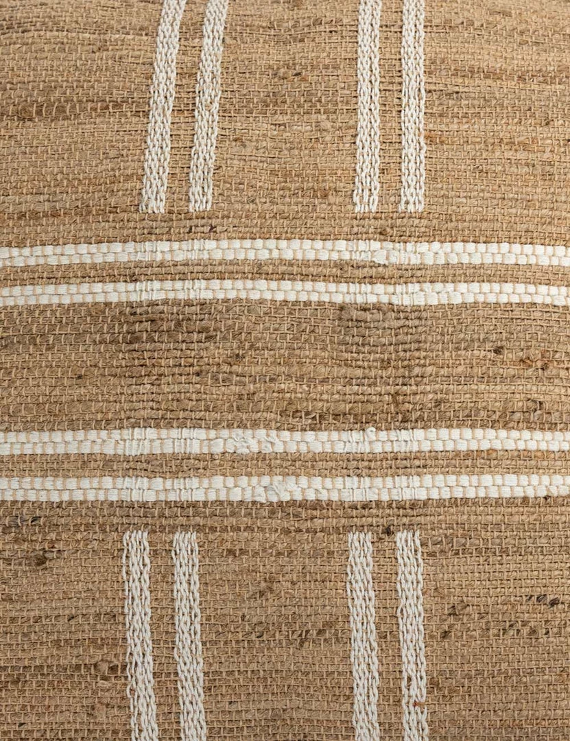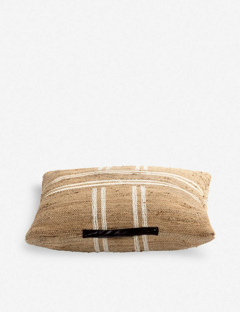 Handwoven from jute and cotton, this versatile floor pillow is grounded in timeless artisan texture set off by a modern cross-striped design. This large decorative pillow can offer a casual touch to your family room or float as spare seating in a dynamic lounge. Leather straps complete the look.