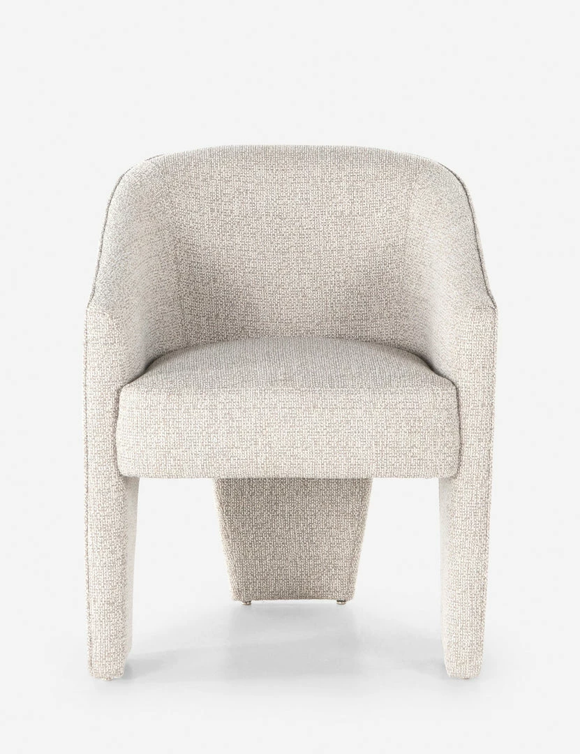 A high performance, bouclé upholstery lends a refined softness to the clean, tailored lines of this dining room chair. Its sculptural form features a unique three-legged design that will bring an elevated touch to a dynamic space. Style this dining chair with an understated, modern dining table for everyday elegance.
