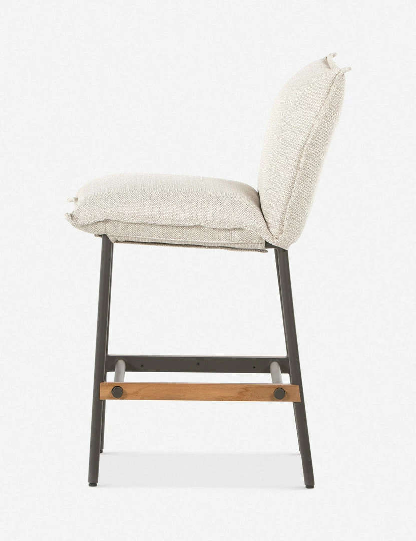 This plush bar chair sits atop a streamlined iron frame with teak accents. The performance upholstered seat and back feature flange detailing for effortless comfort with fresh style. Style this stool for versatile seating from the kitchen to an outdoor snack bar.