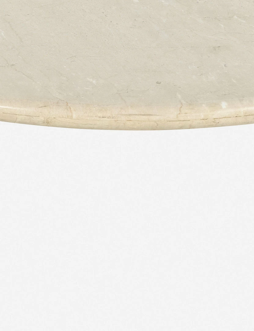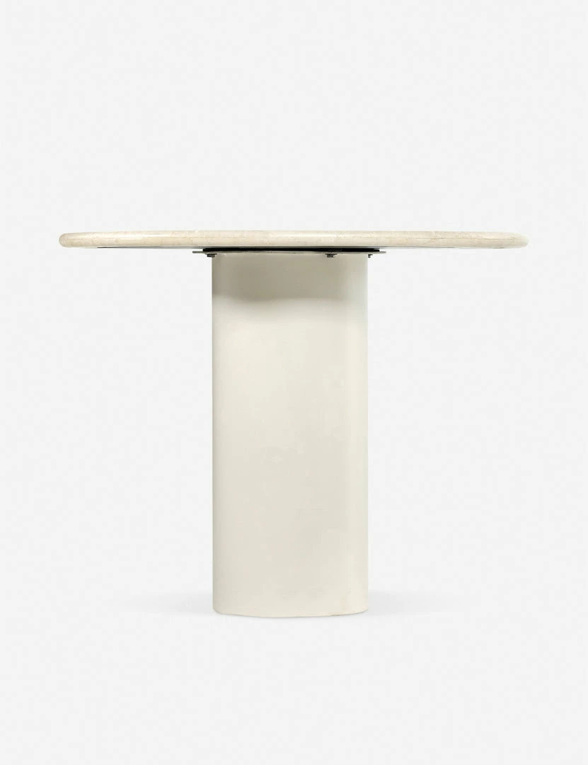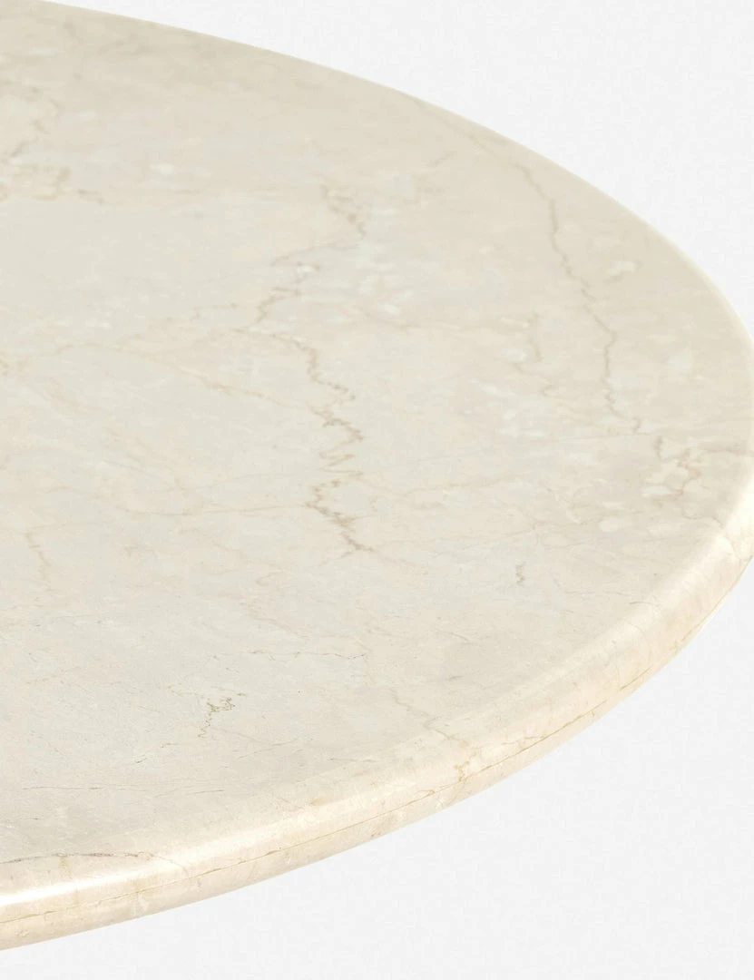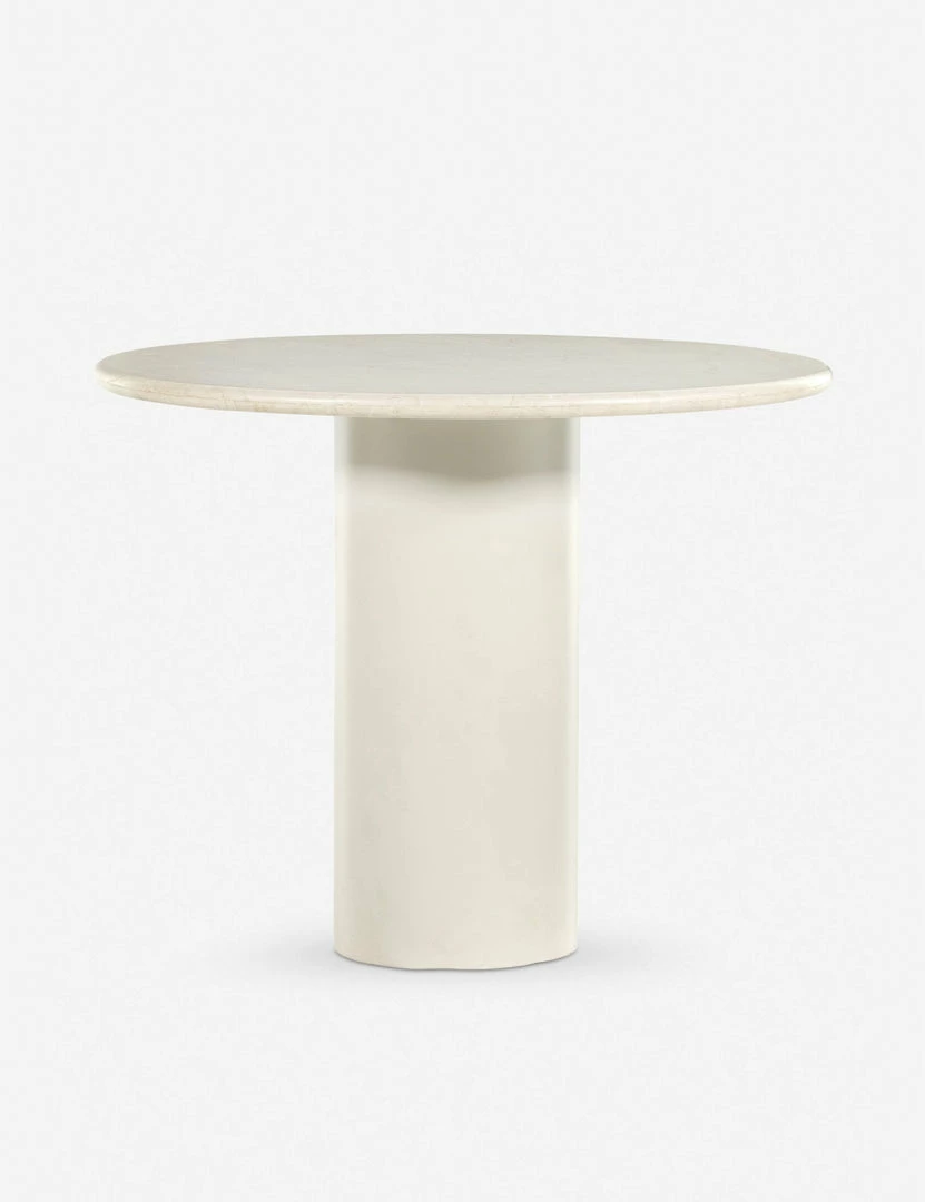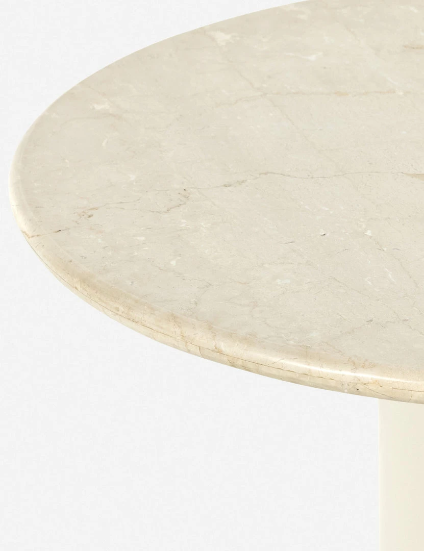 Polish your look with this bistro-style table. A marble top and ivory-finished base-pair curved edges with a monochromatic cream-colored finish to offer a soft visual appeal that wraps retro design notes in a fresh, sophisticated dining table design.