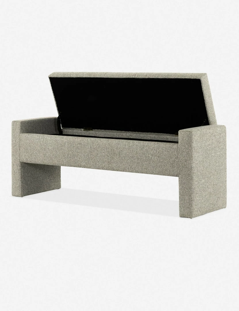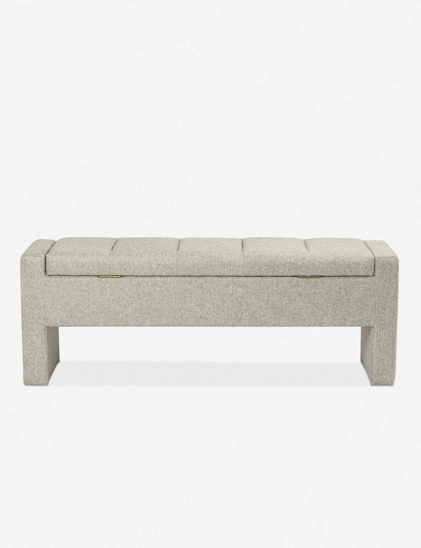 Artfully practical, this upholstered bench opens to reveal trunk-style storage space. In a heathered natural color palette, its streamlined design makes it effortlessly adaptable. Place this bench at the foot of your bed or beside your sofa and store extra cozy throws or bed covers.
