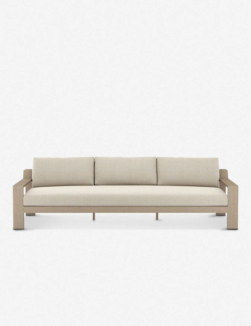 The Mona Collection features architectural lines and teak wood construction to cast a clean, stylish silhouette for outdoor bliss. This versatile sofa has a long frame and plush, performance-upholstered seat, perfect for entertaining or laying out for some fresh air. Whether looking to anchor an outdoor lounge or just in search of extra seating for your garden or lawn, this couch is the perfect touch.