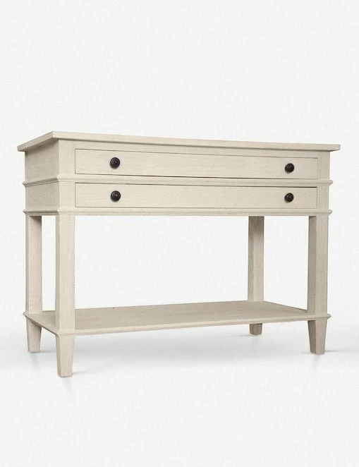 The Moriah nightstand makes versatility look effortless and stylish. The shallow drawer is framed with bevel detailing for a traditional look while the washed oak finish gives the piece that antique feel. The perfect size for a bedside table or an entryway console, this piece can be styled almost anywhere in your home.