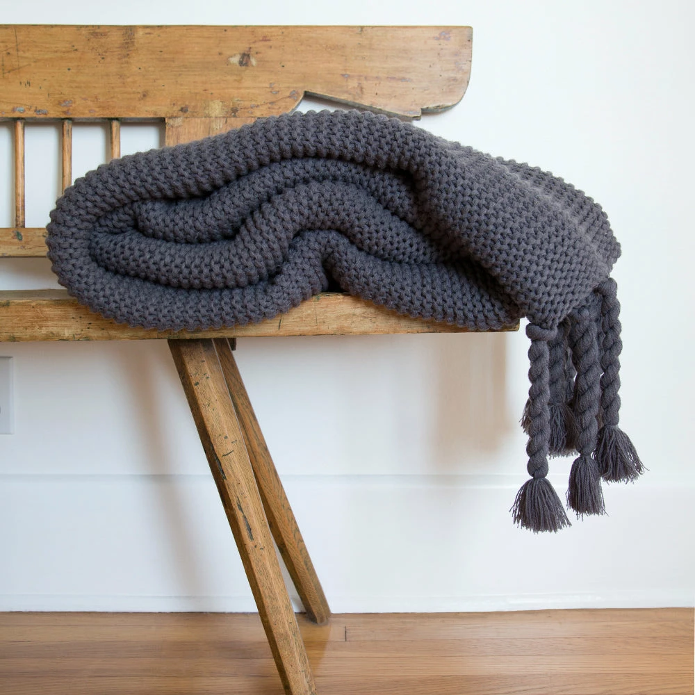 Hello, instant hygge vibes! This cozy throw features a chunky textured weave and braided tassels for an inviting look that’s versatile enough for any room.