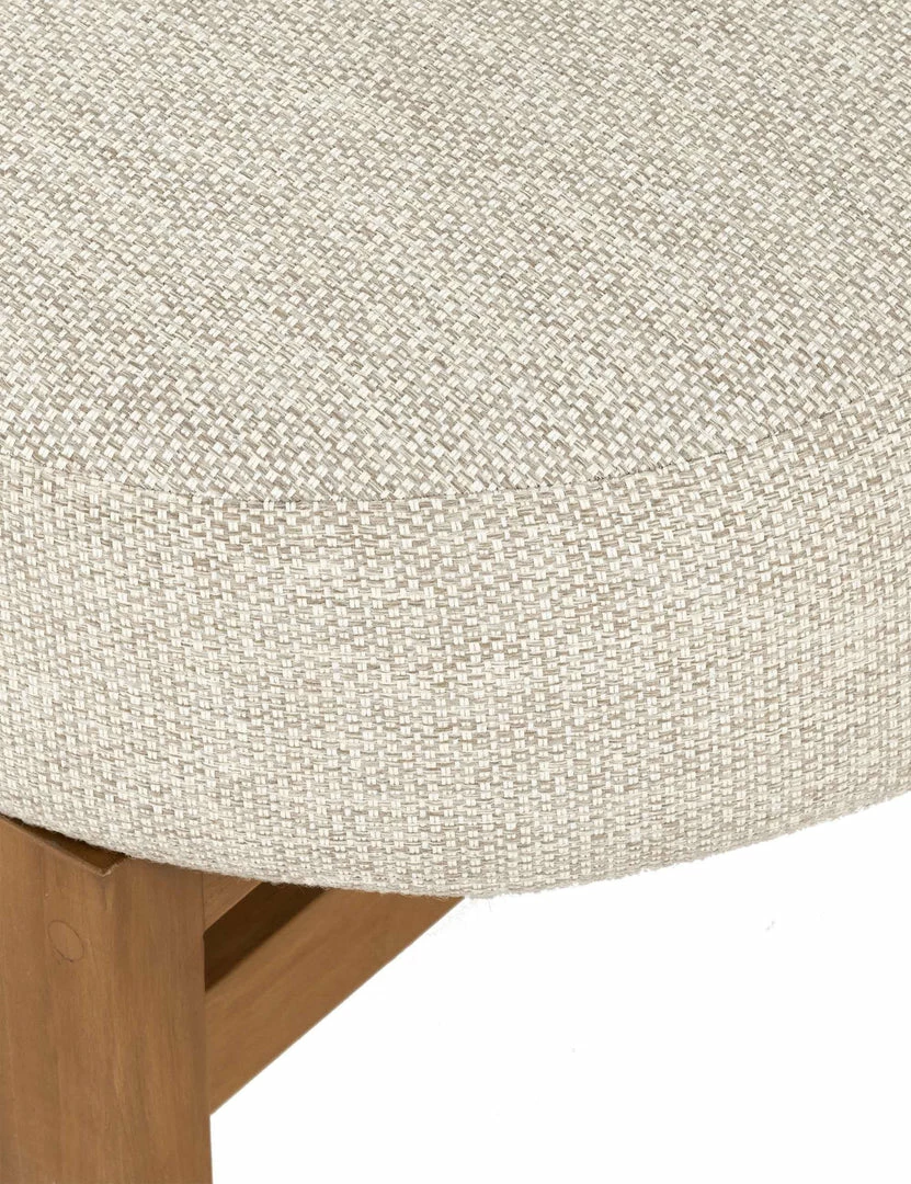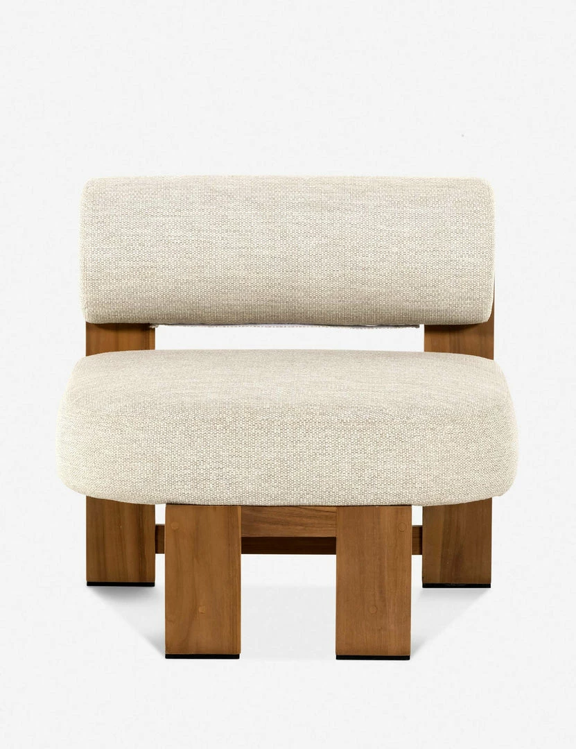 Sculptural lines offer this chair a distinctive form with style to spare. The linear wood frame creates the perfect contrast with the plushly rounded seat and back. With its outdoor-friendly upholstery, this occasional chair can effortlessly float from a casual living space to a refined garden lounge.