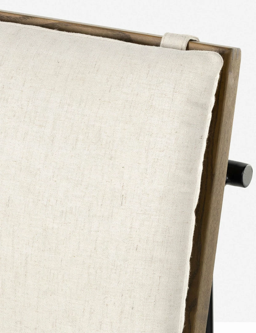 This bar and counter stool is all about crisp, clean style. Featuring a ladder-back and streamlined black iron frame, this bar chair design offers a sturdy yet welcoming look with an upholstered seat and back cushion.