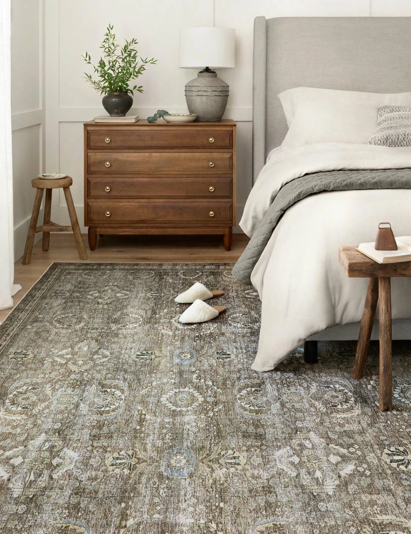 A lightly distressed, traditional design inspires an antique feel in this floor rug collection’s soft weave and seasoned palette. This rug’s modern construction ensures a durable quality that will bring instant character to a collected aesthetic with easy-care appeal for high-traffic and everyday spaces.