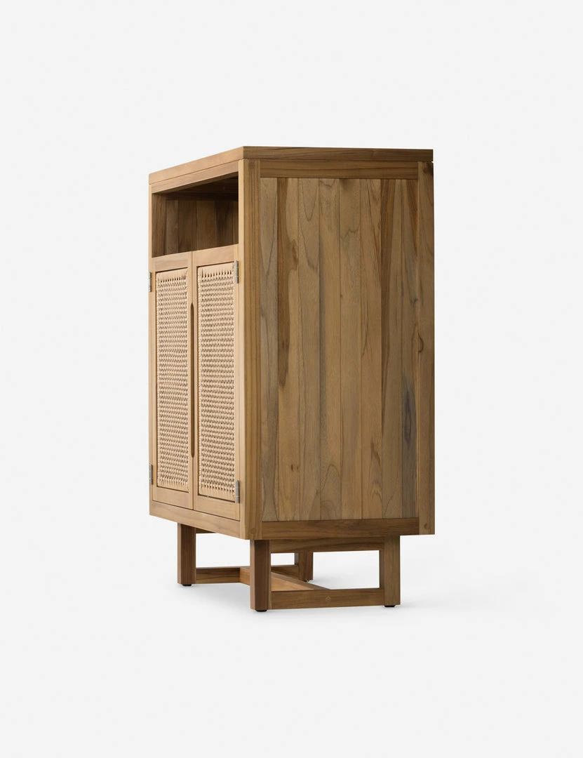 Inspire a space that feels elevated yet timelessly casual with this versatile indoor/outdoor collection. A teak frame with an open shelf and all-weather wicker doors offer an effortless appeal to the Anson cabinet. Add this storage cabinet to a patio or sunroom lounge for a practical touch of storage.