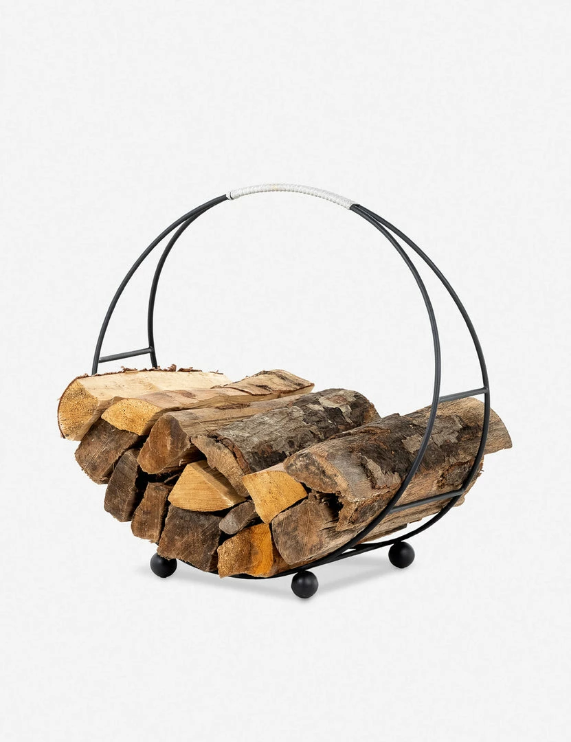 Cozy meets chic in this streamlined iron firewood stand. Its curved profile and white-handled top will add rustic notes of refinement atop your hearth or next to an outdoor fireplace, holding a fresh cut pile of birch or ash wood.