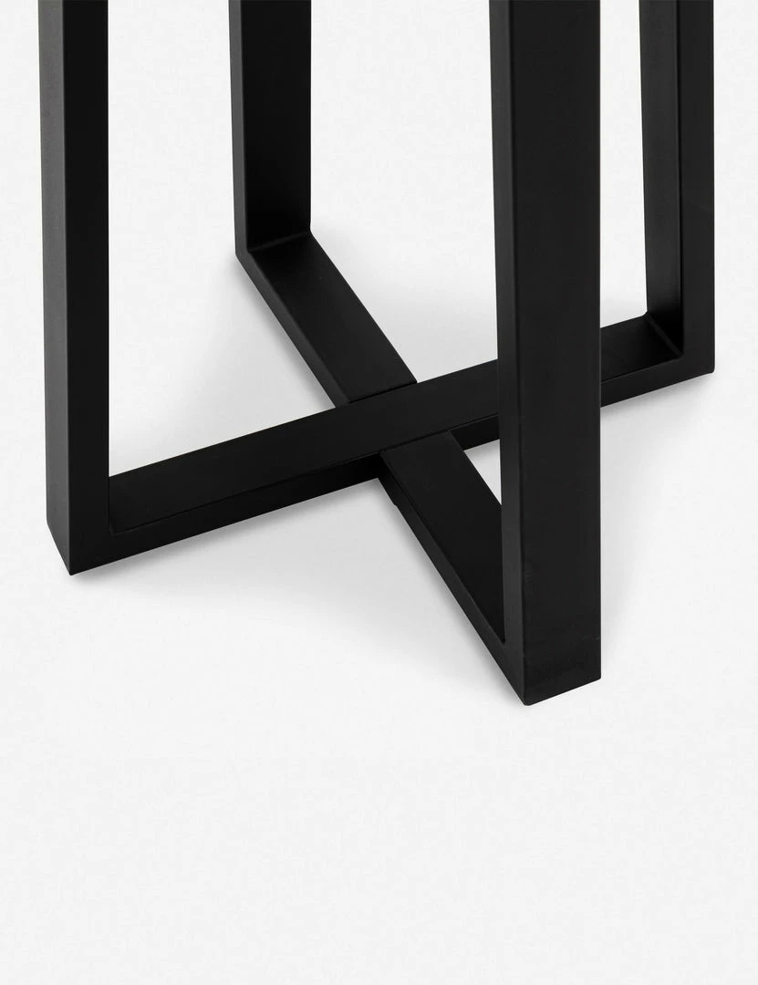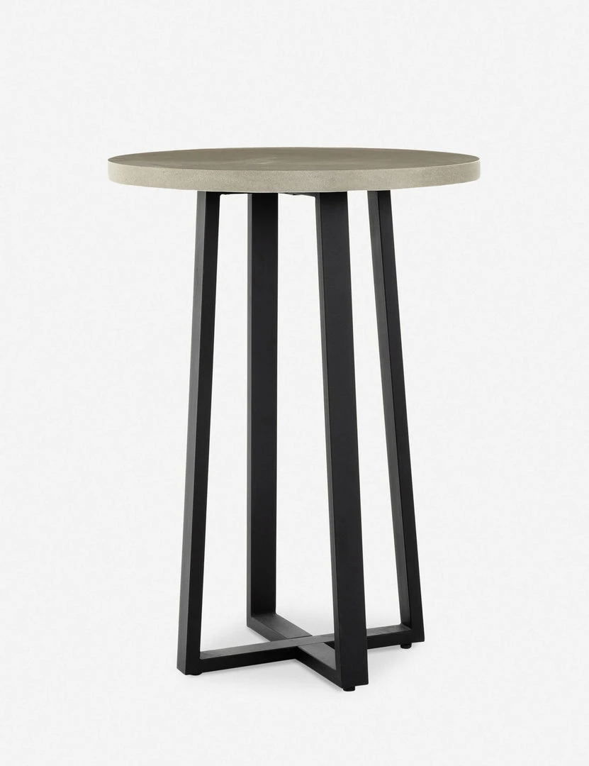 For modern style indoors or out, add this round dining table to the mix. Featuring a lava stone top and angular iron base, this bar-height table offers a minimalistic look with an industrial edge.