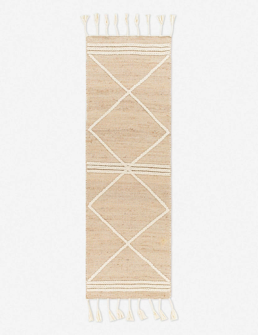 Pairing a unique geometric design with a natural fiber construction, this handwoven rug strikes instant appeal. The tasseled fringe adds a laid-back touch fashioning this modern rug with a fresh and casual feel.