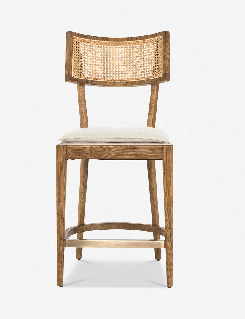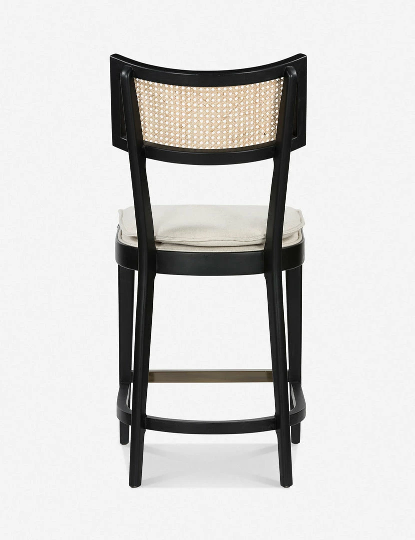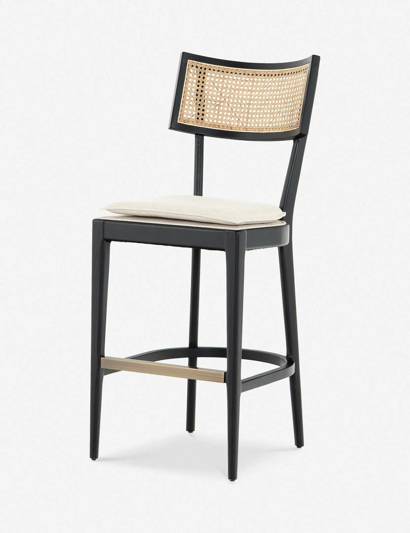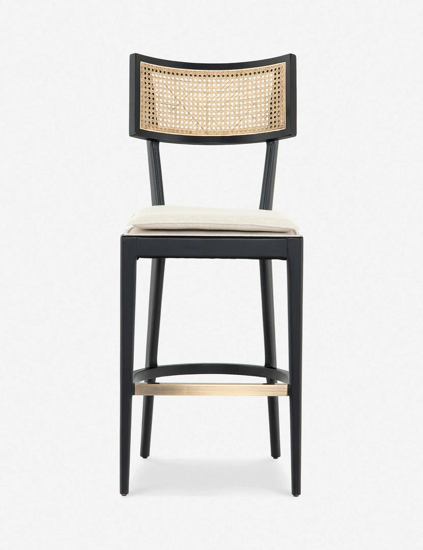 Inspired by the deco forms and featuring woven cane, this stool adds airy, natural style to a kitchen or lounge. We love the textured element, and the upholstered cushion gives this stool a soft touch. Plus, the metal kickplate offers mixed-material appeal for lasting quality.