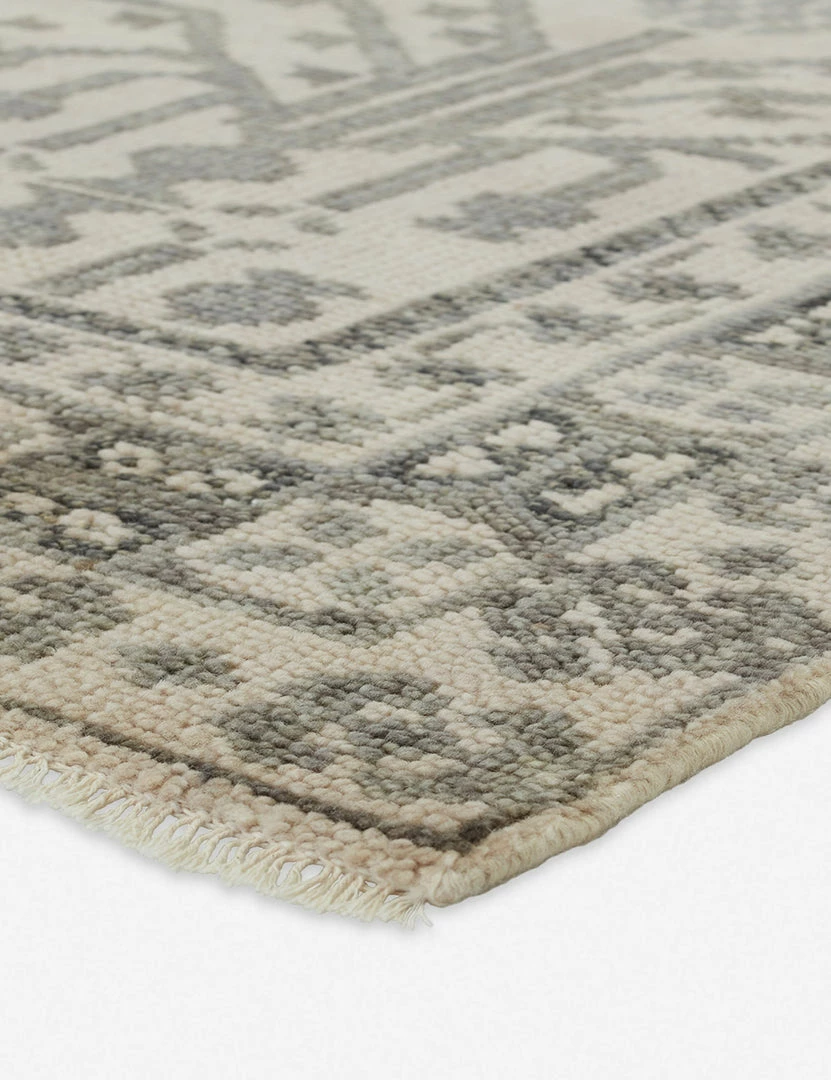A traditional design featuring an intricate border and floral accents scrolls across this floor rug while the subtle fringe adds to its artisan-made character. This hand-knotted wool rug offers a naturally soft yet durable foundation for elevated everyday style.