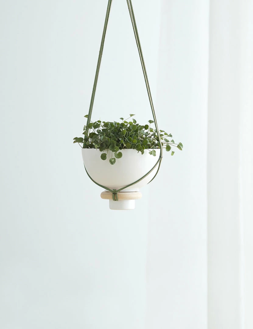 Bring fresh texture and dimension to your wall decor with this hanging planter set. The modern design features a self-watering system with drainage and a separate no-drip dish to ensure easy care and healthy growth. This small planter is perfect for succulents or trailing plant starters and attaches to the wall with included hardware.