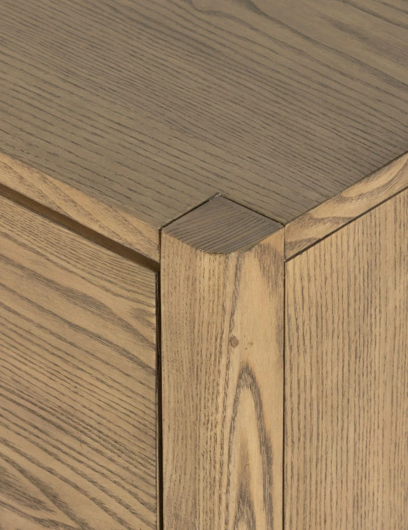 A clean-cut, ash wood design brings Danish-inspired warmth to this Laird media console. Iron arch pulls complete the look, while a woven cord shelf offers added texture. We love the versatile storage with its center cabinet, open shelving, and two spacious drawers—plus rear cutouts ready this console for practical appeal in a family room or den.