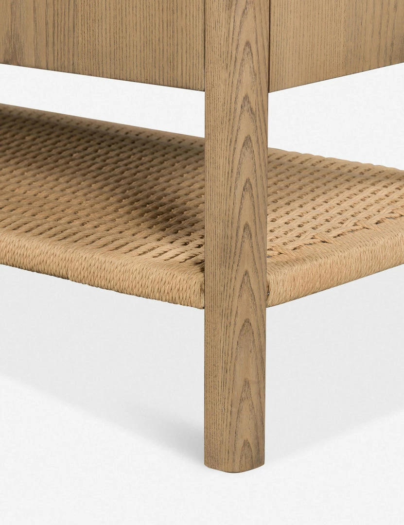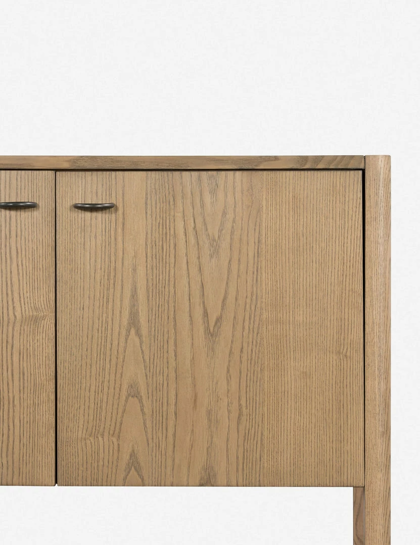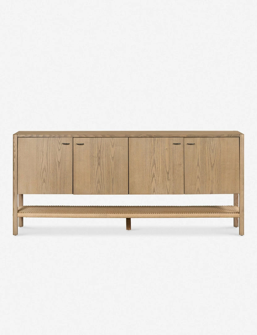 A clean-cut, ash wood design brings Danish-inspired warmth to this Laird sideboard. Iron arch pulls complete the look, while a woven cord shelf offers the perfect textural touch. This sideboard cabinet provides a spacious interior for everyday essentials, plus the open lower shelving is ready for easy storage and display.