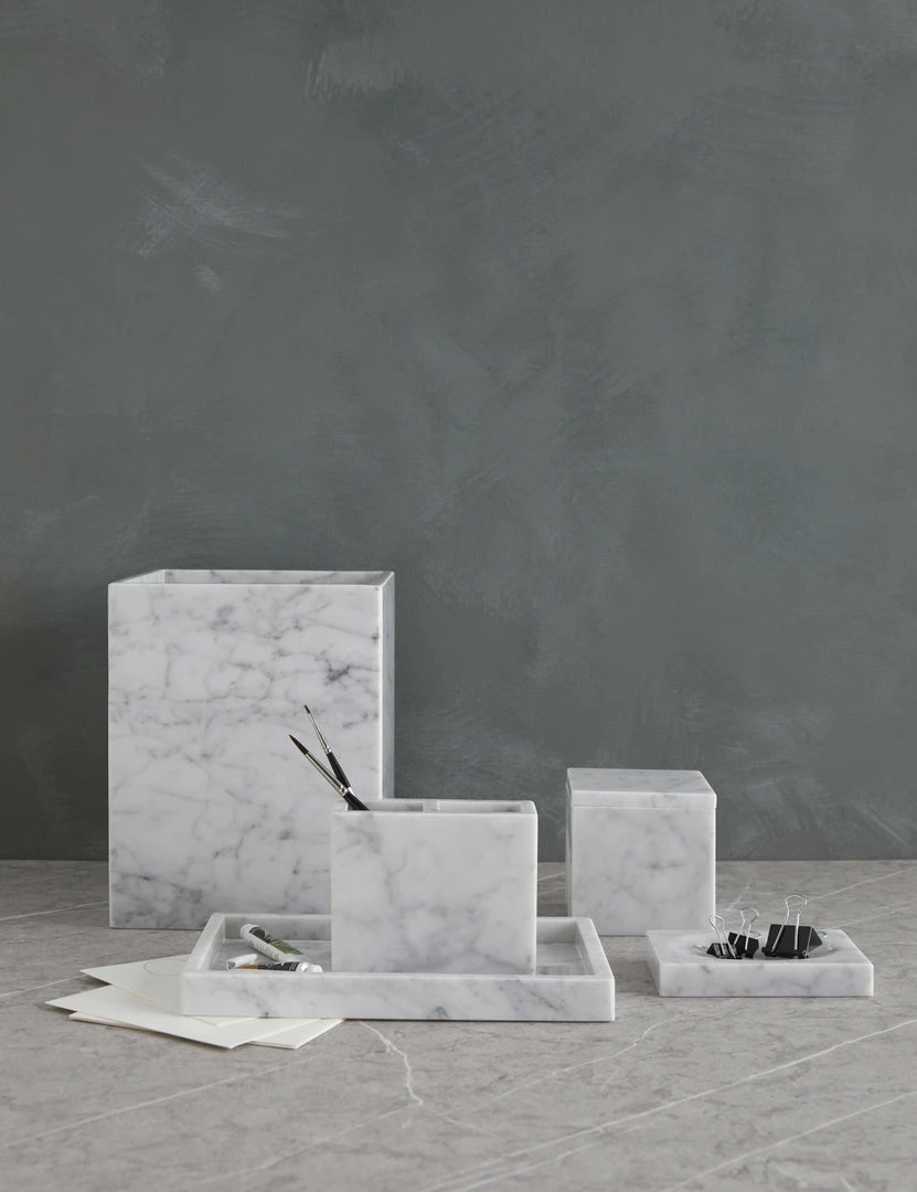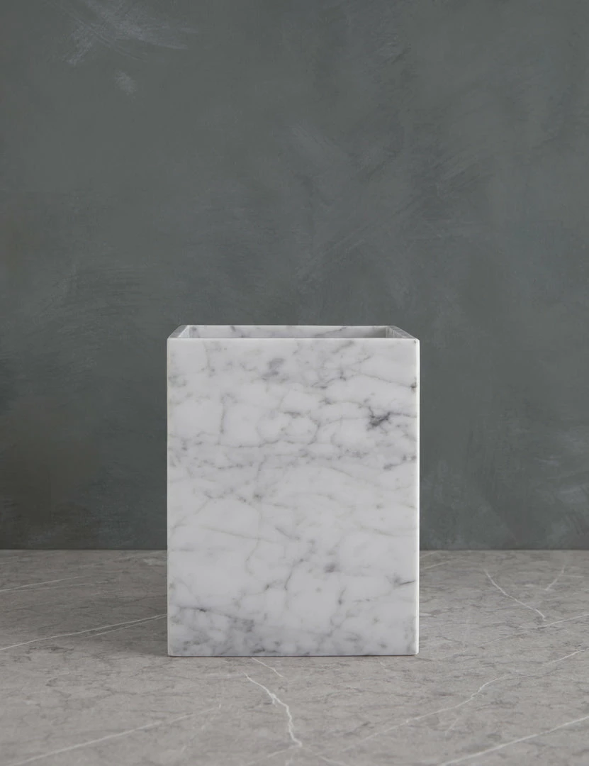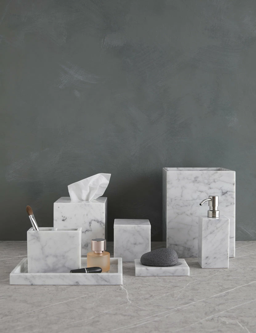 Italian marble brings a luxe edge to this bath accessory collection—cut and polished for a flawless spa feel. Crisp lines and unique veining give these bathroom essentials a stunning edge with an elegant touch.