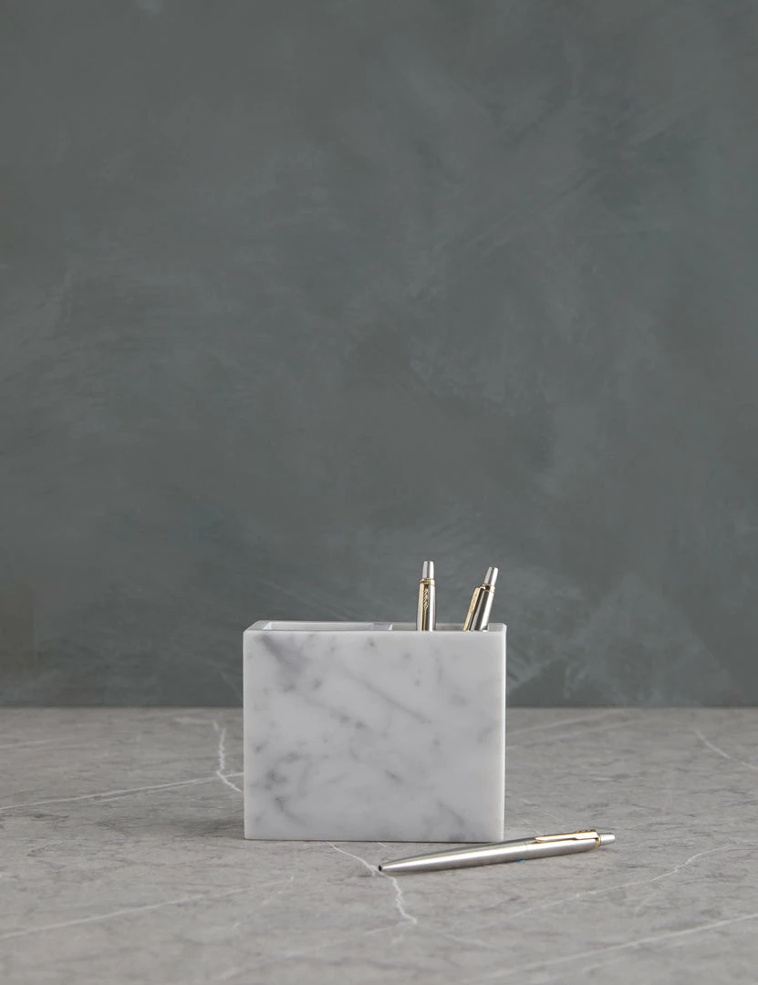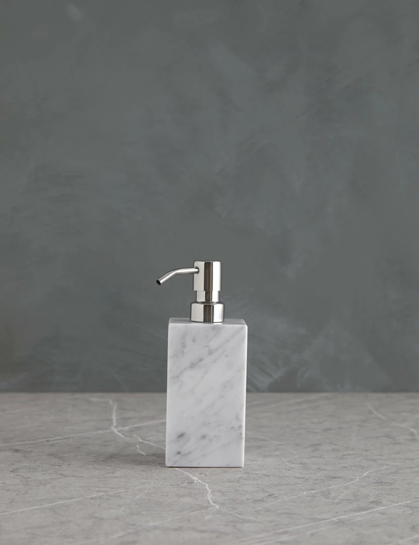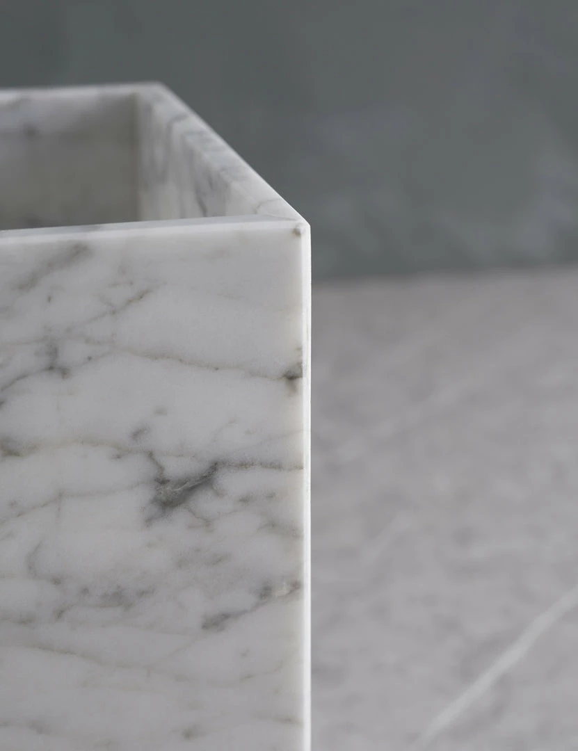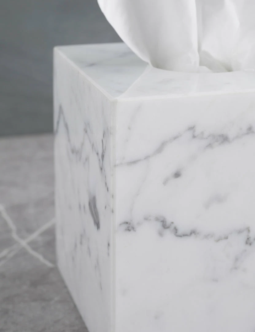 Italian marble brings a luxe edge to this bath accessory collection—cut and polished for a flawless spa feel. Crisp lines and unique veining give these bathroom essentials a stunning edge with an elegant touch.