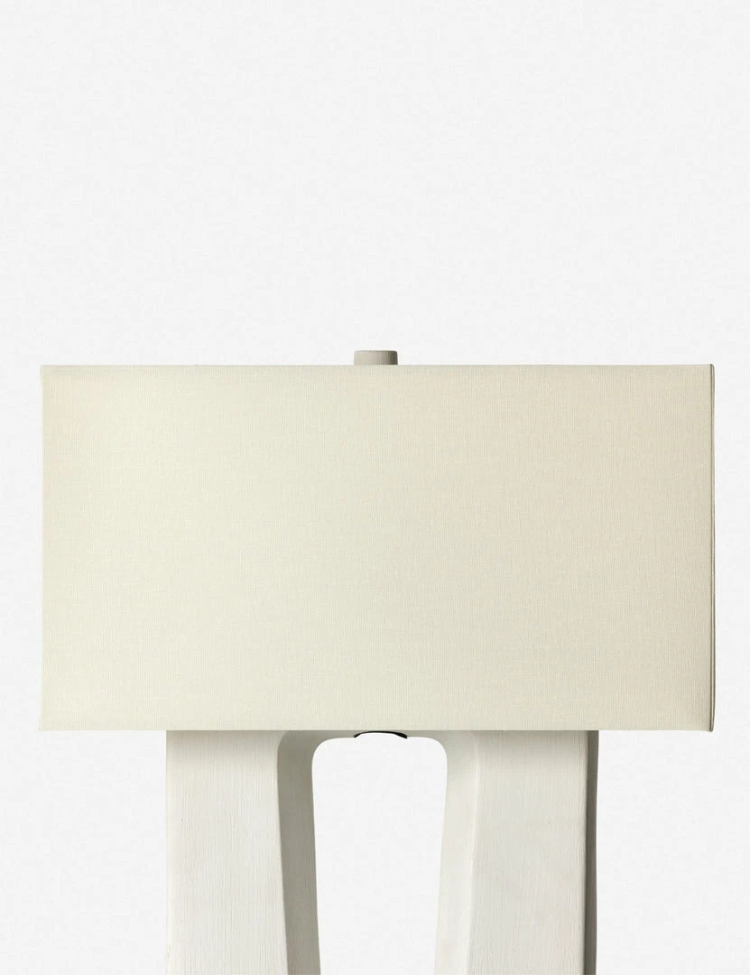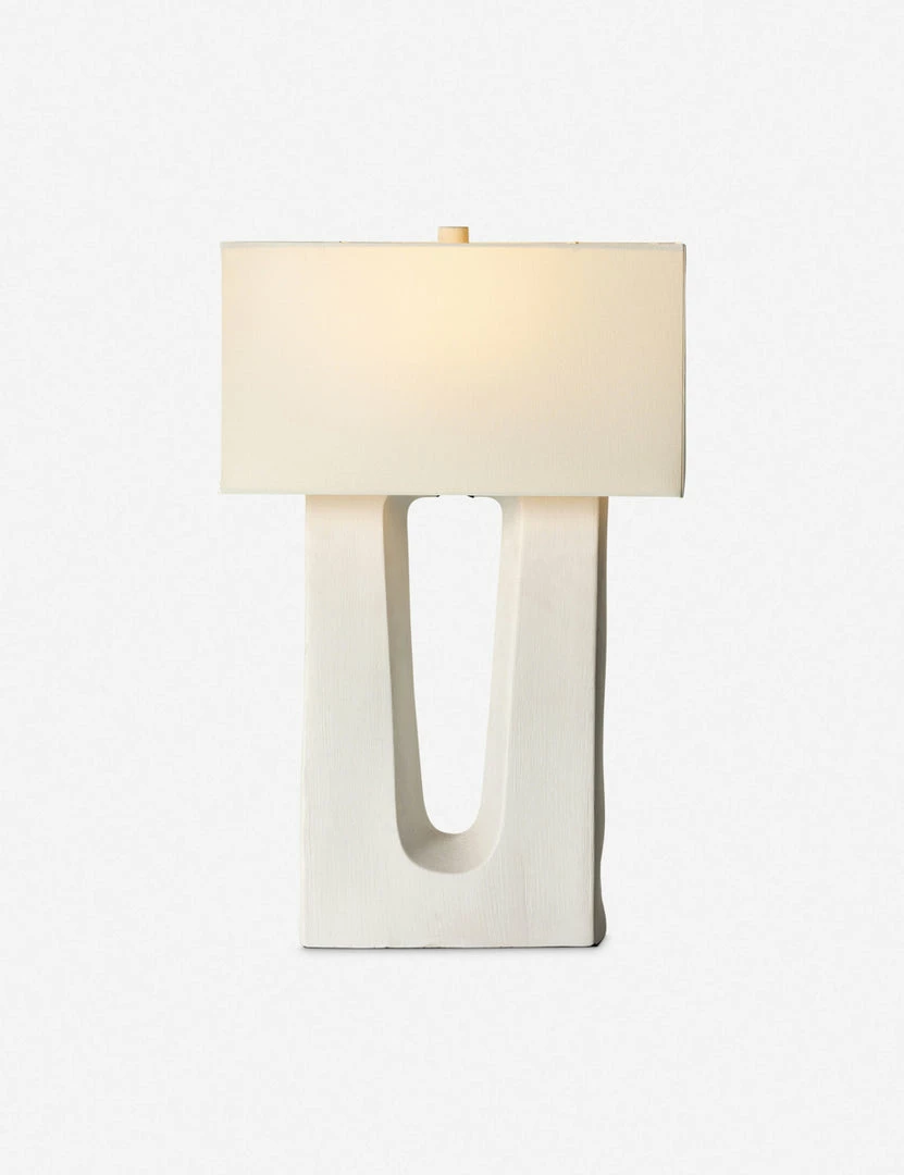 Clean lines and minimalist notes spark a mid-century feel in this sculptural table lamp. The ceramic base features artisanal edges and a cutout design perfectly complemented by the crisp rectangular shade.
