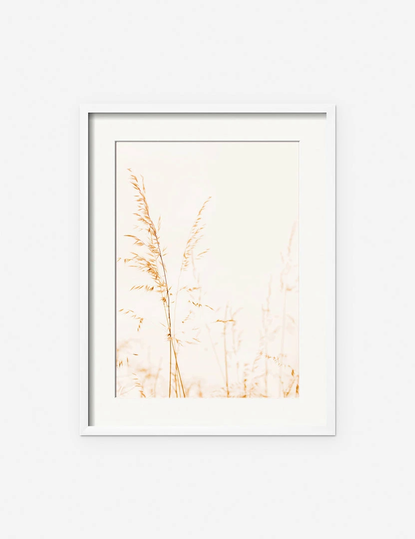 A close, ethereal photo of wild grass against a featureless sky offers a sense of delicate poise in this wall art print. The atmospheric tone will bring dimension and depth to your wall decor, whether styled as a standalone piece or in a gallery art wall.