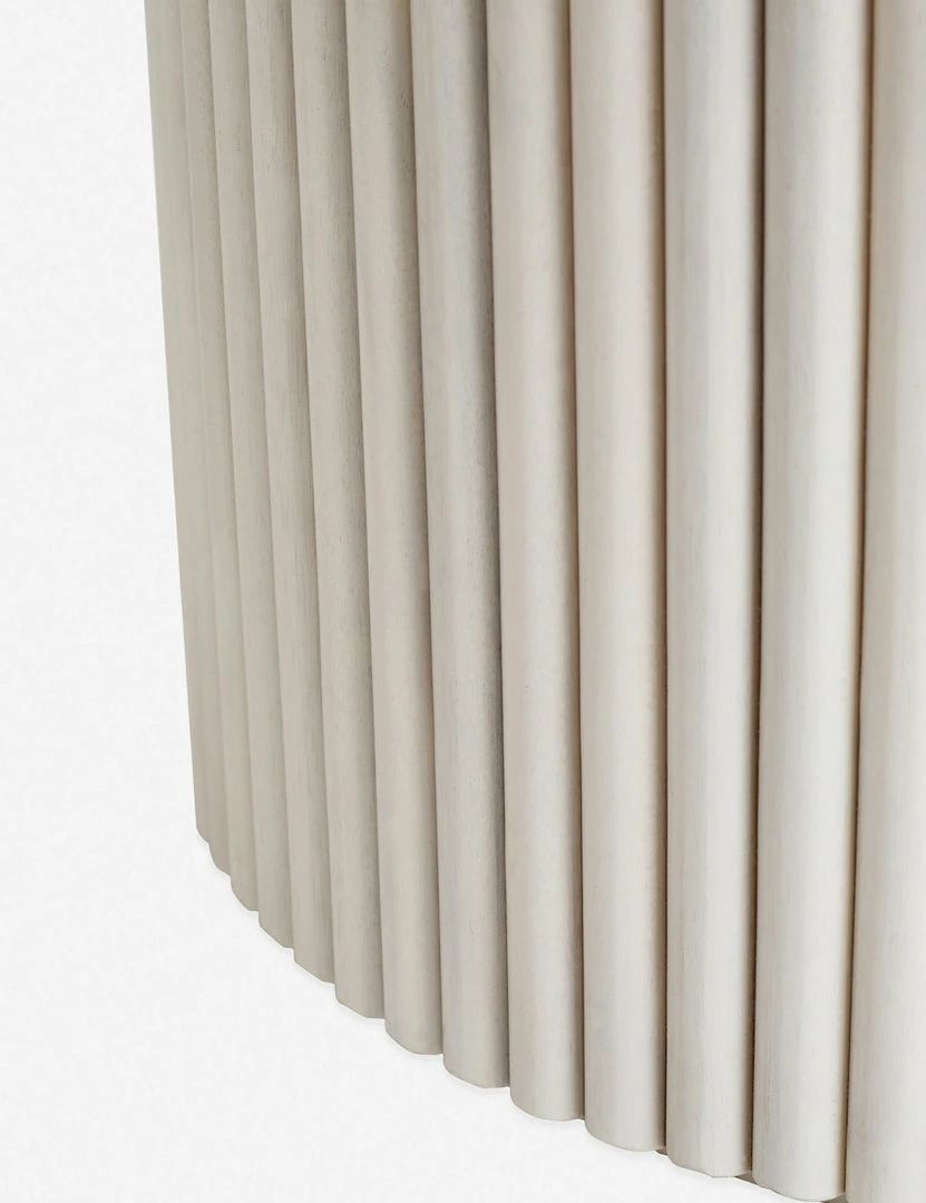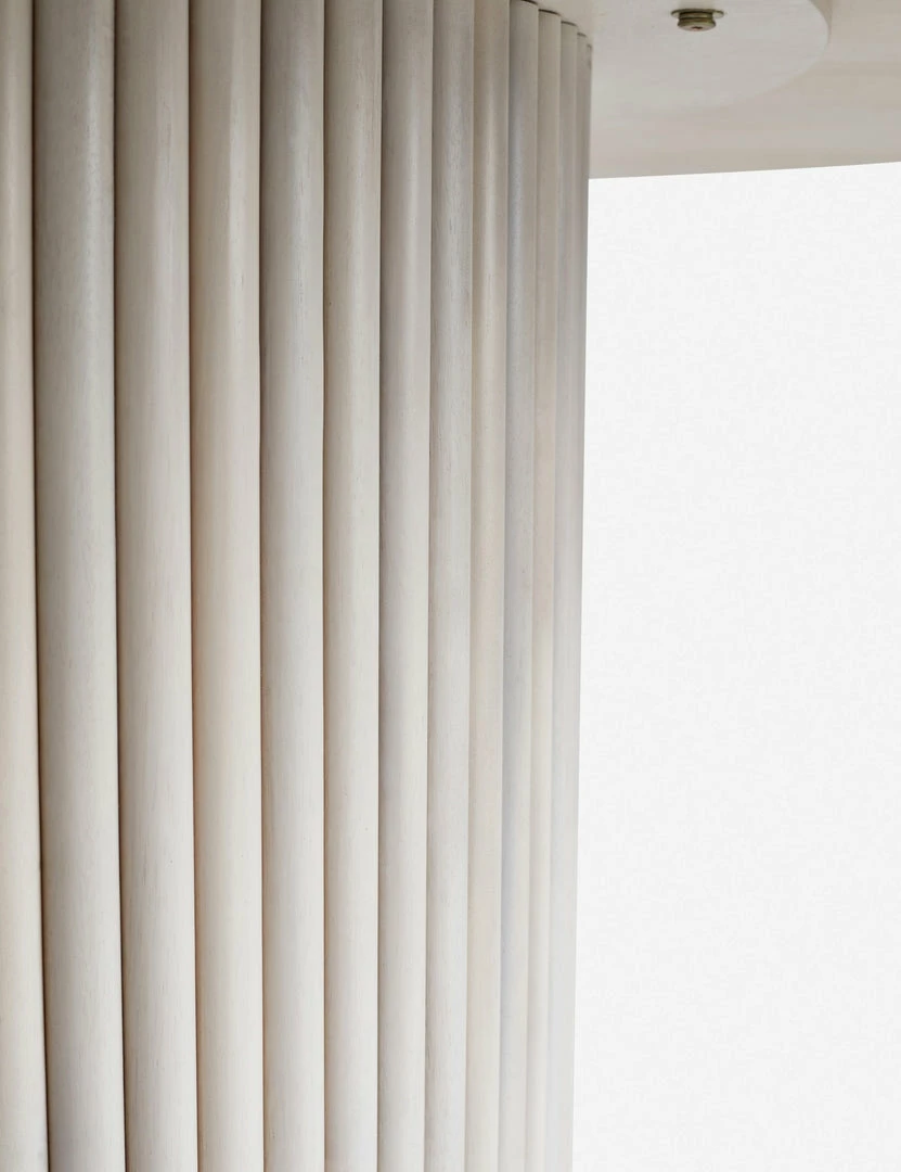 With its large-scale, fluted base design, and muted, white-washed finish, this Rutherford Round Dining Table elevates your space with its vintage-inspired appeal. A pedestal base is made from solid acacia and finished with a veneer top. We love styling this wood dinner table with clean-lined chairs, geometric rugs, and sculptural centerpieces, all in tonal finishes.