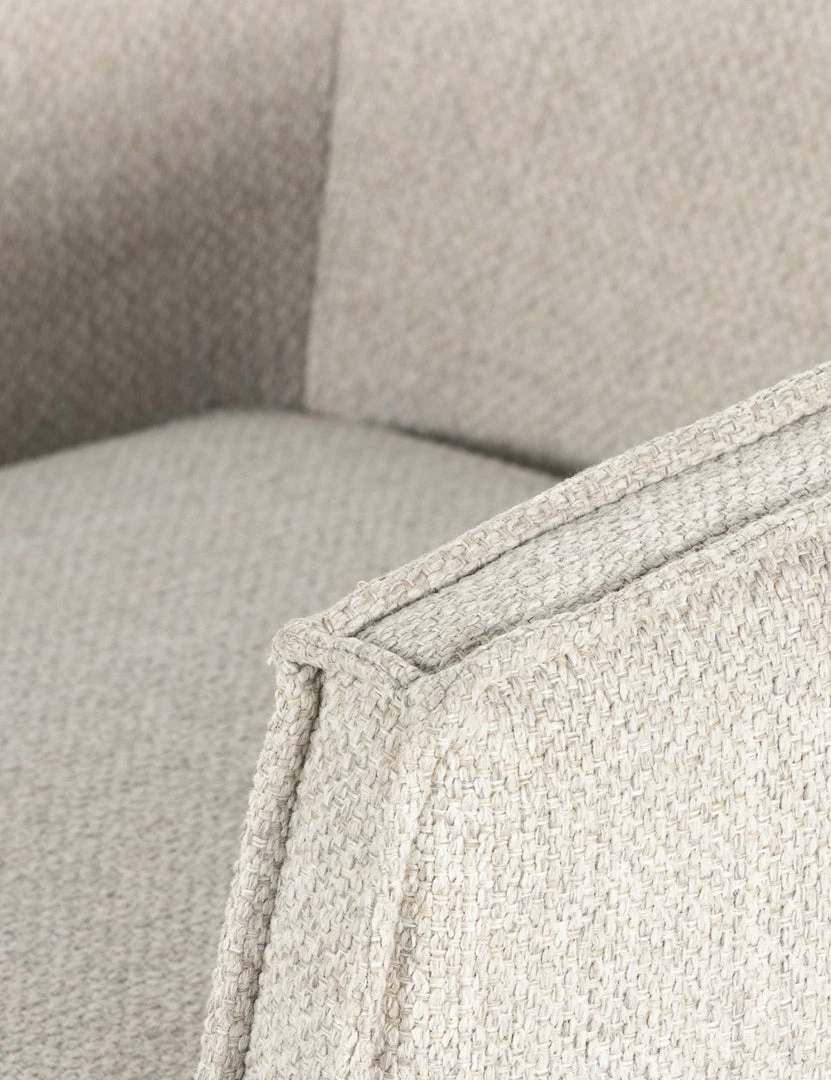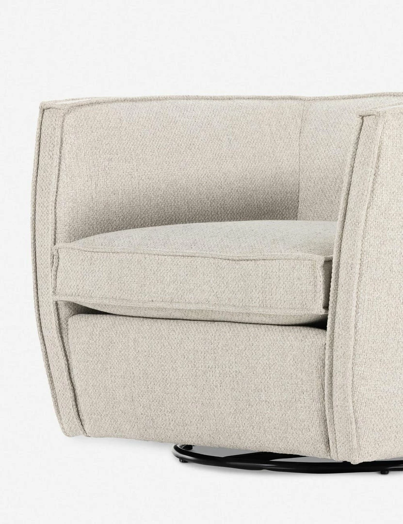 Sustainable fibers and a swivel base spark dynamic appeal in this barrel chair design. With its flange trim and deep seat, this cozy accent chair offers chic flair for your home office or bedroom reading nook.