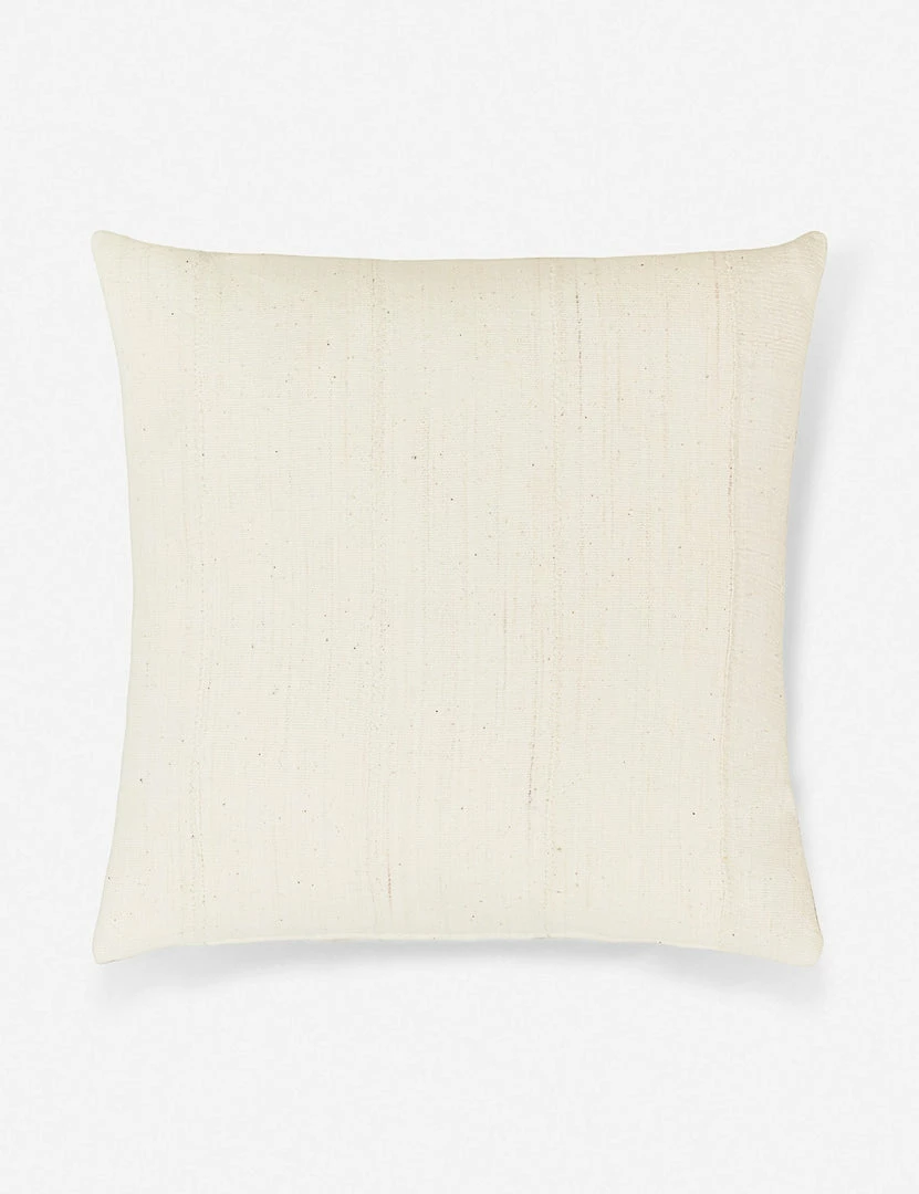 Simple and clean, this solid white mudcloth pillow is the perfect neutral to mix and match with other styles and shapes. This one of a kind pillow features a subtle texture that will vary due to its handmade nature. Finished with a hidden zipper and a natural linen backing.