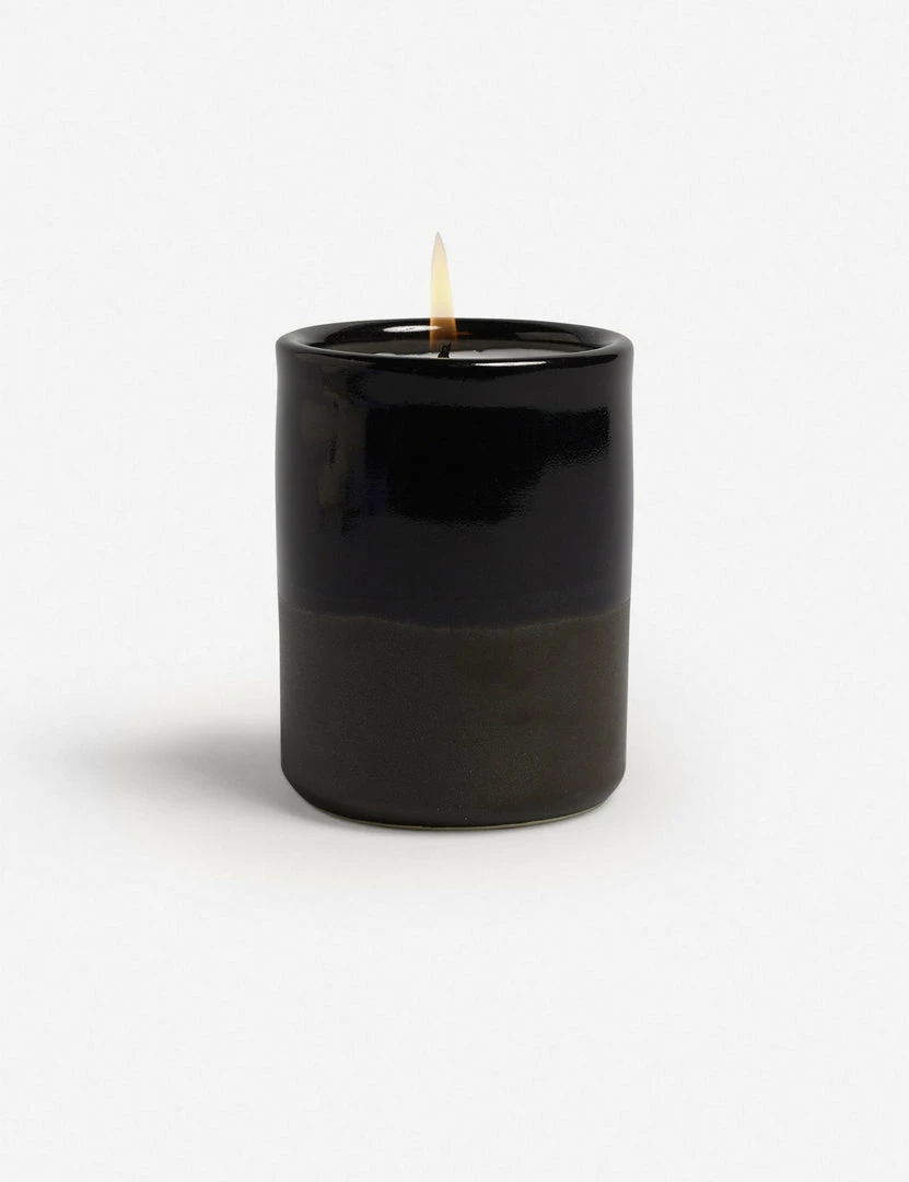 This hand-poured candle instantly transports you to the green forests along the California coast, with notes of oakmoss, pine, citrus, and wood smoke. The hand-thrown stoneware vessel features a two-tone matte glaze, easily blending in with any room.