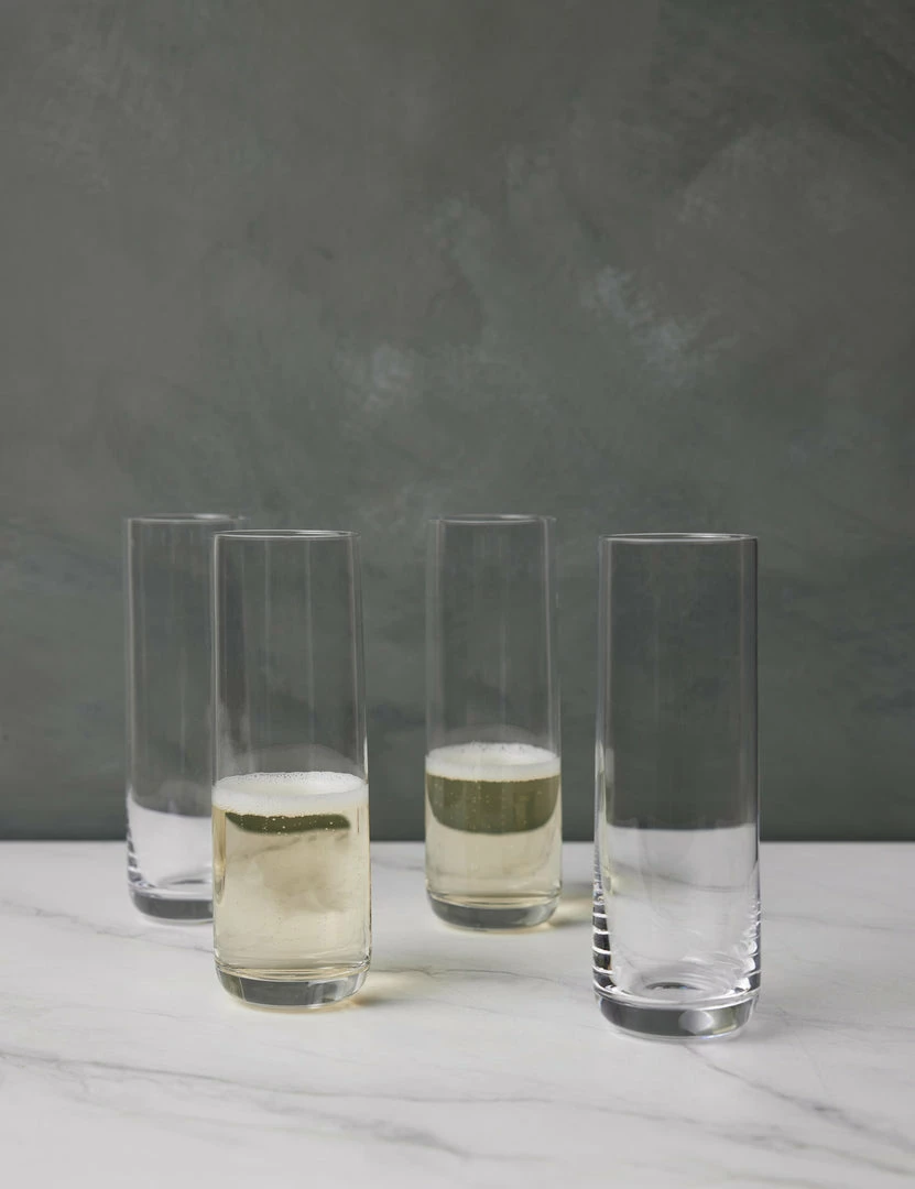Simple yet stunning glassware is an essential element for dining and entertaining. Fine stems and carefully proportioned bowls mark the clean, refined silhouettes of this barware collection. Whether slow-sipping a cocktail on ice or pouring a glass of water, this set of highball glasses brings style to the table.