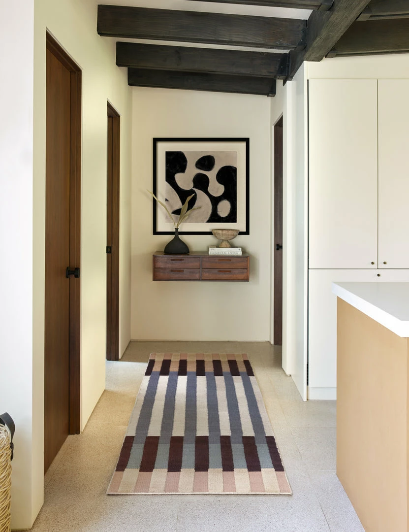 Los Angeles-based interior designer and author Nina Freudenberger is renowned for her California cool aesthetic, and for creating inspirational and bespoke spaces. Exclusively for Lulu and Georgia, Nina has designed a line of bold geometric rugs inspired by the women of the Bauhaus movement. Influential textile designer Otti Berger created minimal, geometric weavings, and this floor rug pays homage with its abstract linear design. Hand-knotted from a wool-cotton blend, this prismatic area rug layers in striking high-low texture to your space.