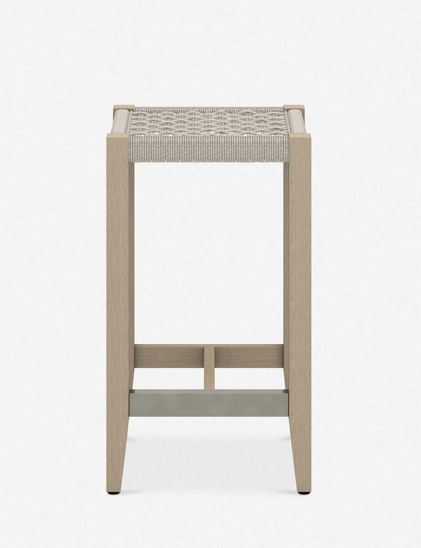 A slim, linear frame is complemented by rope detailing in this modern counter stool. Whether looking for flexible casual seating or styling an outdoor bar, this stool is a dynamic addition to your outdoor entertaining.