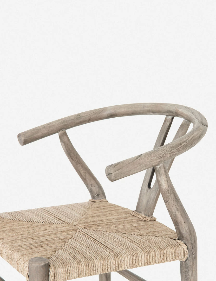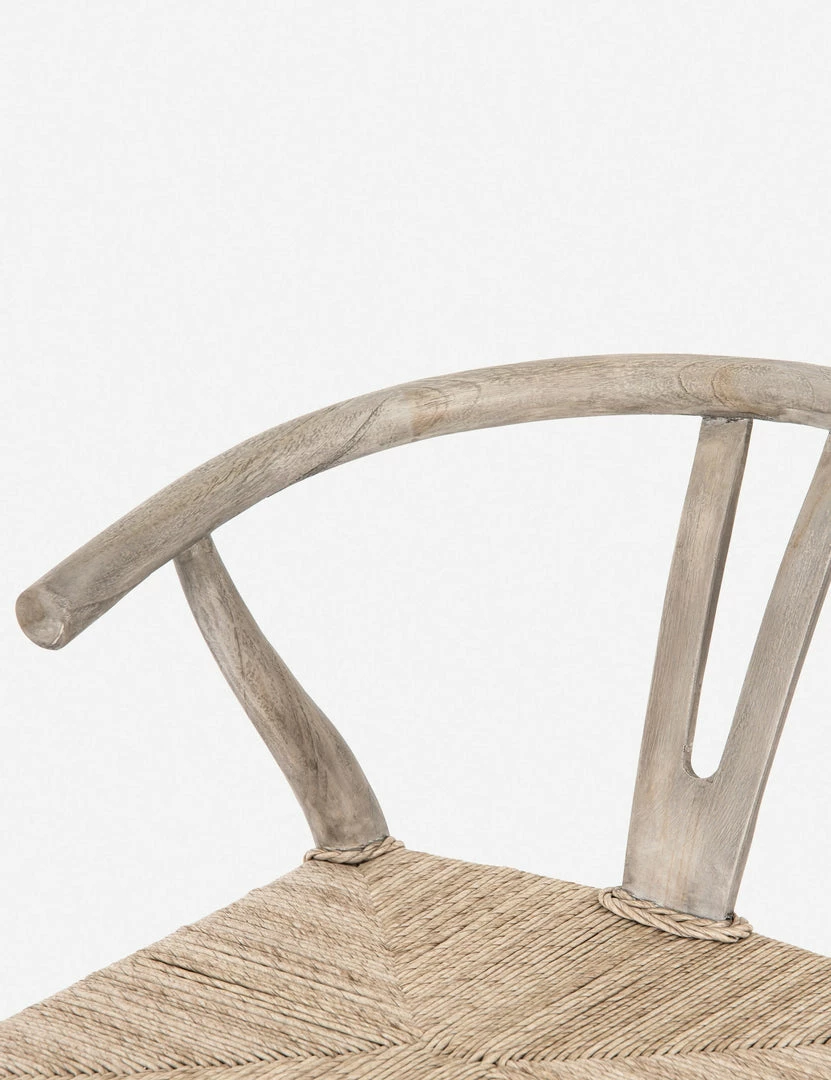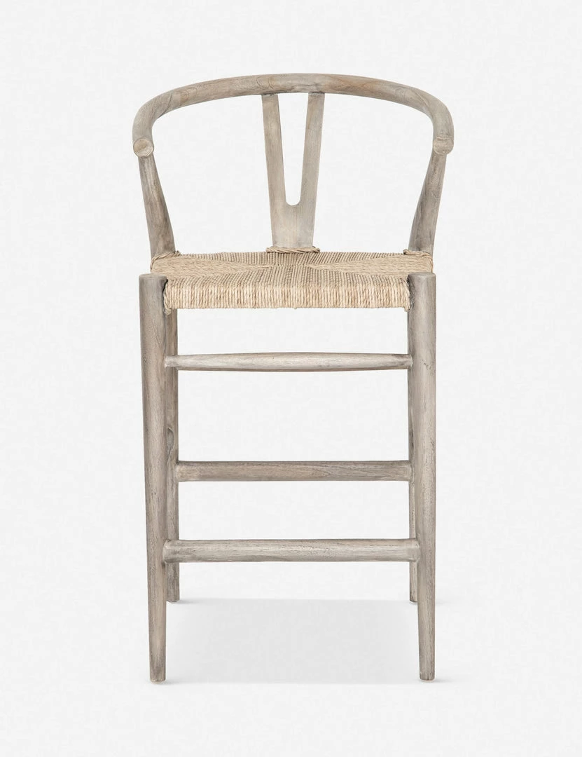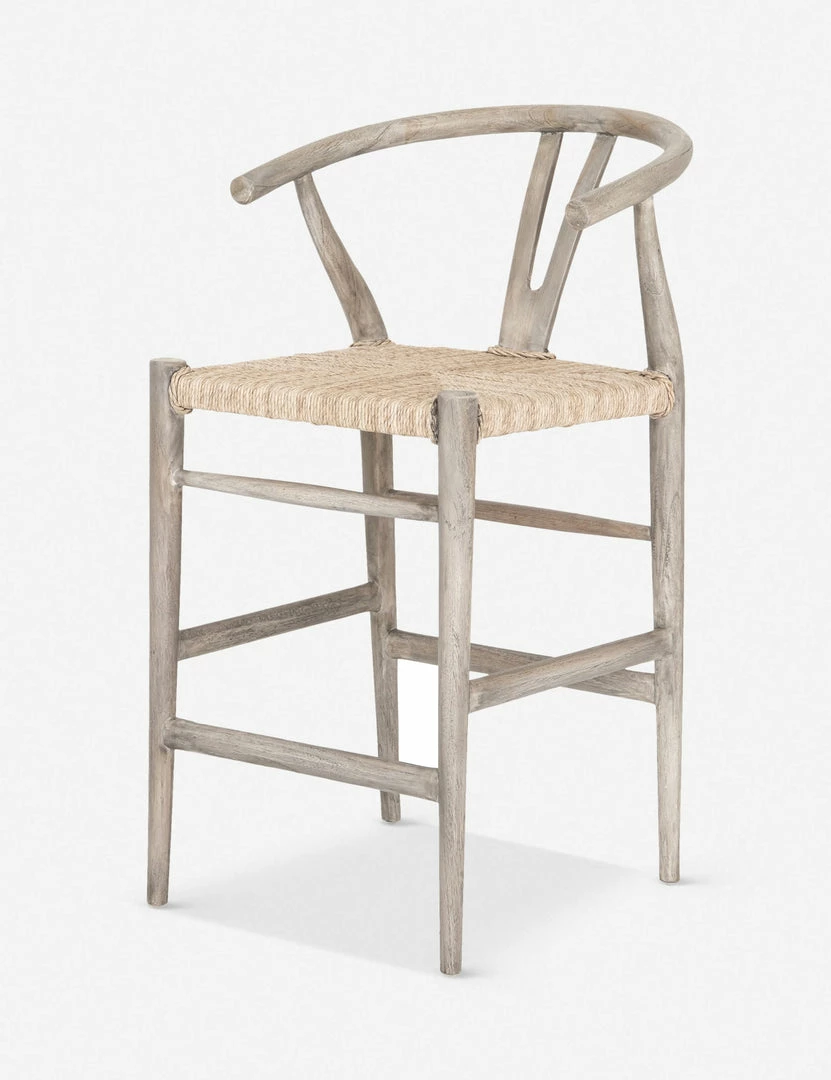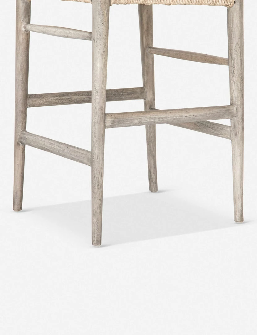 Perfect for transitional dining-room bars, this stool features a woven seat, curved back and weathered wood finish.