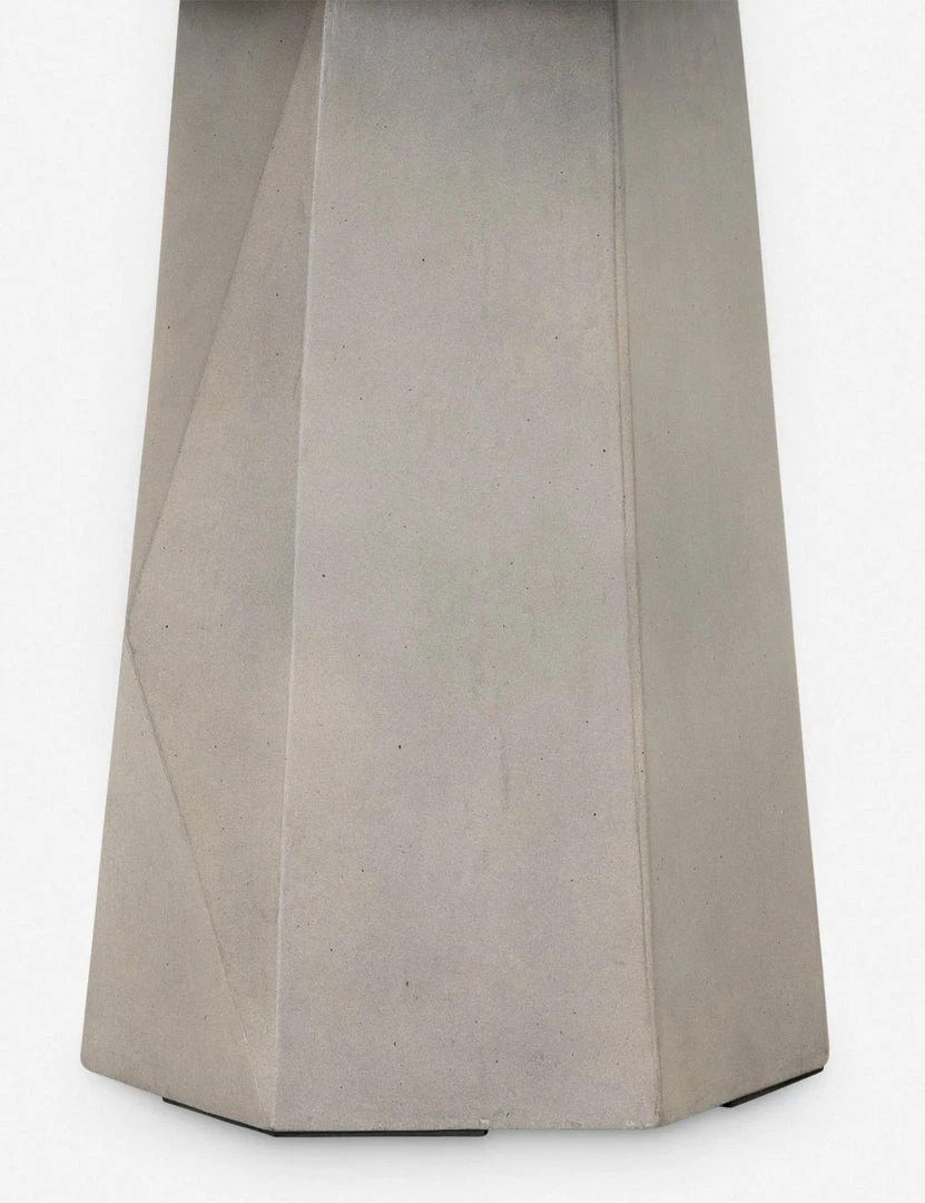 Less is more with this modern-minded statement piece. Constructed from industrial concrete materials with an angular base and a classic round top, the Mara table boasts soft, sleek character and timeless appeal. Looks right at home in both indoor and outdoor settings.