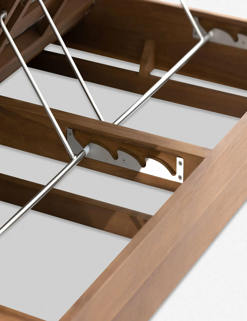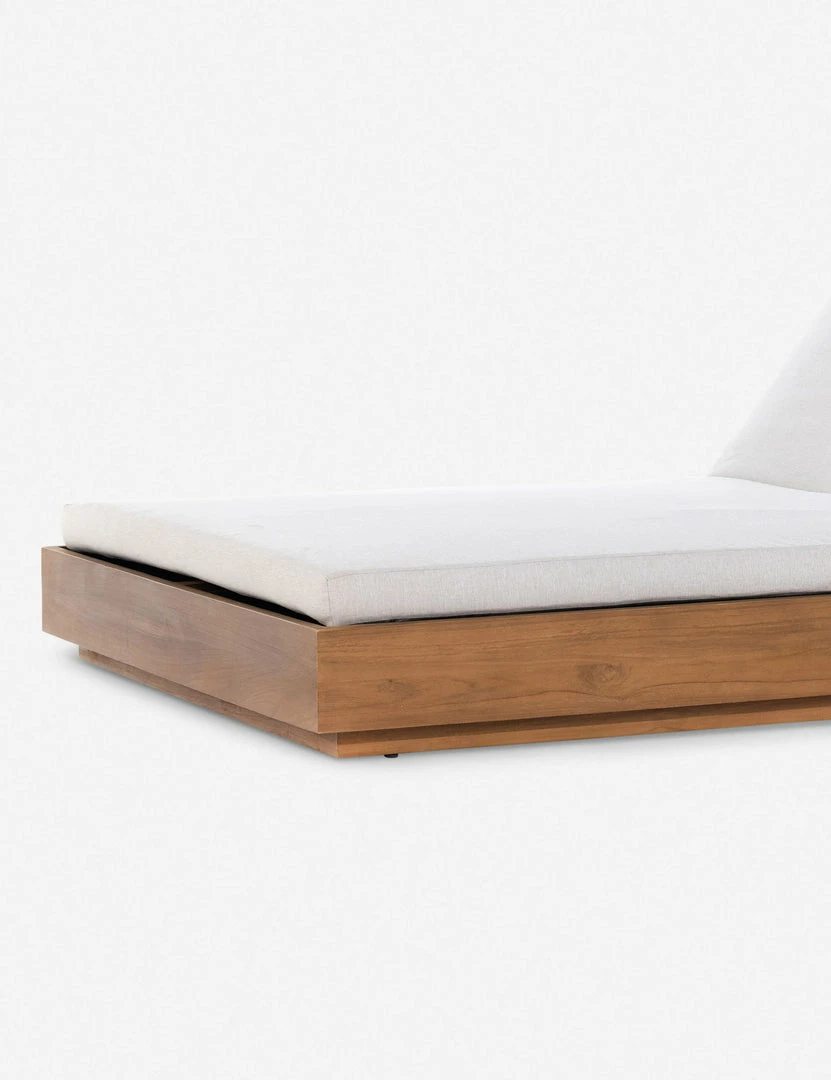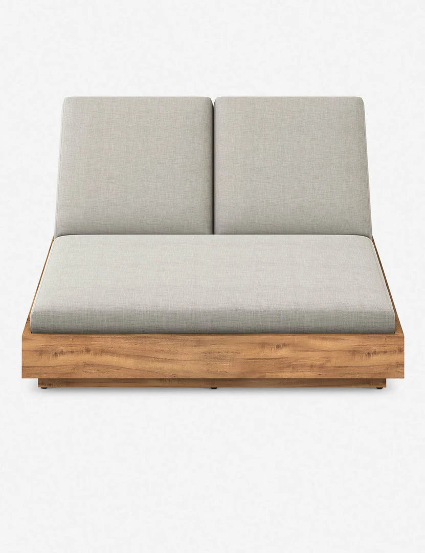 Streamlined design with a beautiful, solid teak box frame offers lasting style in this refined double chaise. The performance upholstered cushions and adjustable back offer dynamic comfort so you can lounge in ease. With its generous dimensions, this spacious chaise has plenty of room for two.