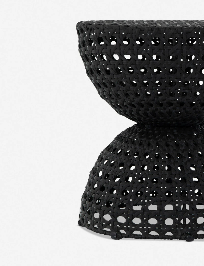 Timeless shape meets modern design in this airy drum-shaped side table. Whether finishing your look or in search of new inspiration, this end table offers a tone-setting accent with versatile potential. Its hourglass silhouette features an all-weather synthetic weave for a texture-forward appeal you can style from a studio to a patio.