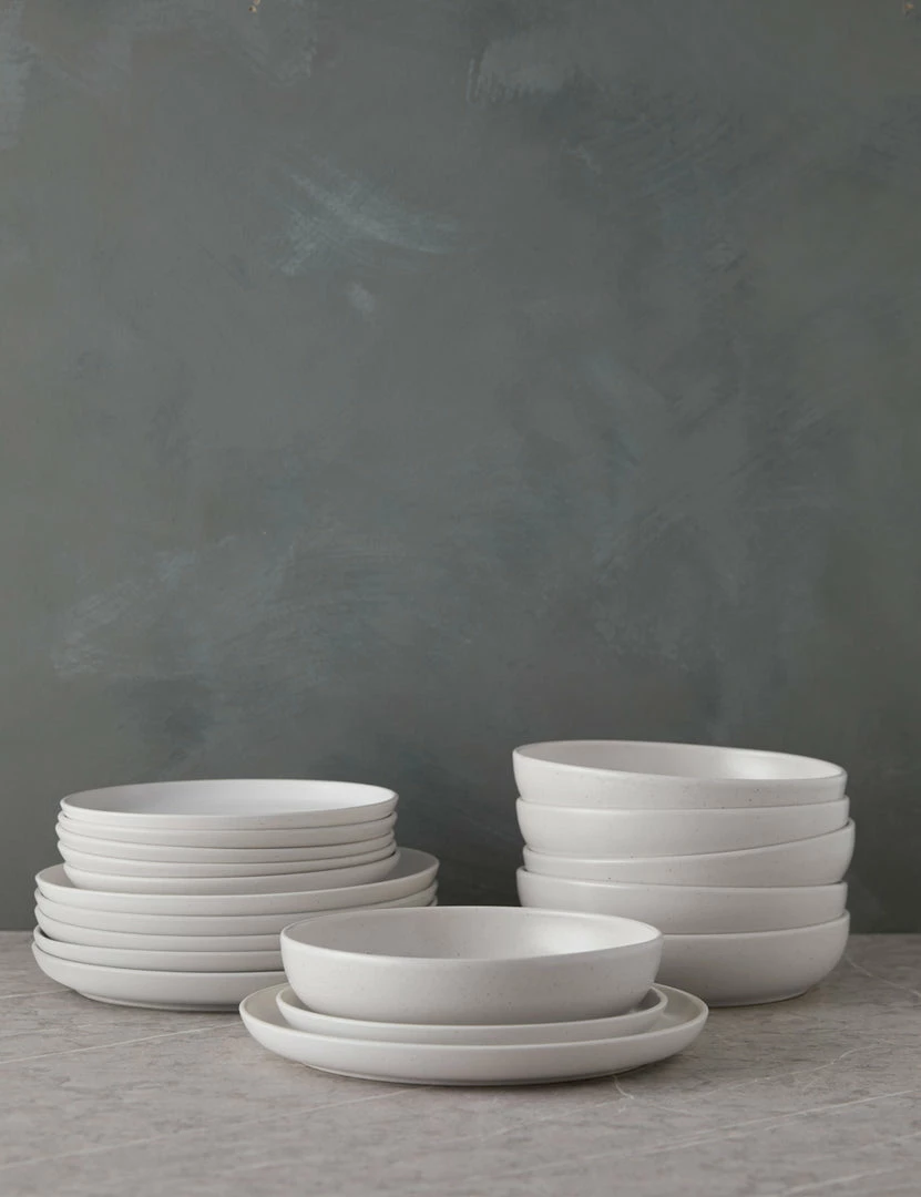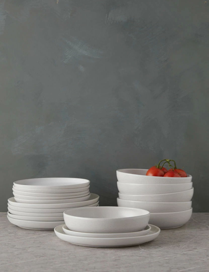 From Casafina, the Pacifica dinnerware collection features clean line designs marked by a refined balance and finish, lightly speckled for a distinctly modern look. Fashioned from stoneware to be durable and practical, this dinnerware set for six is a tastefully casual essential for elevating everyday bites and hosting weekend gatherings.