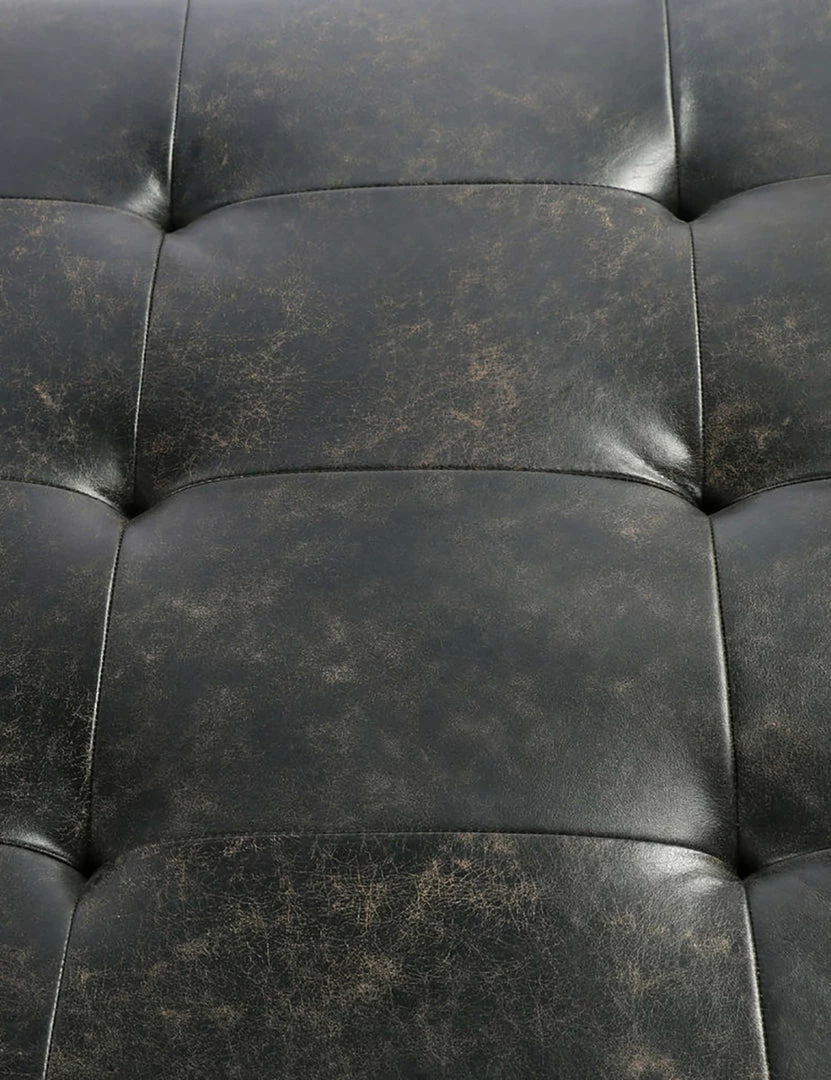 A few well-placed curves and a distressed leather finish bring old-world elegance to this tufted coffee table. Perfect for mid-century modern aesthetics!