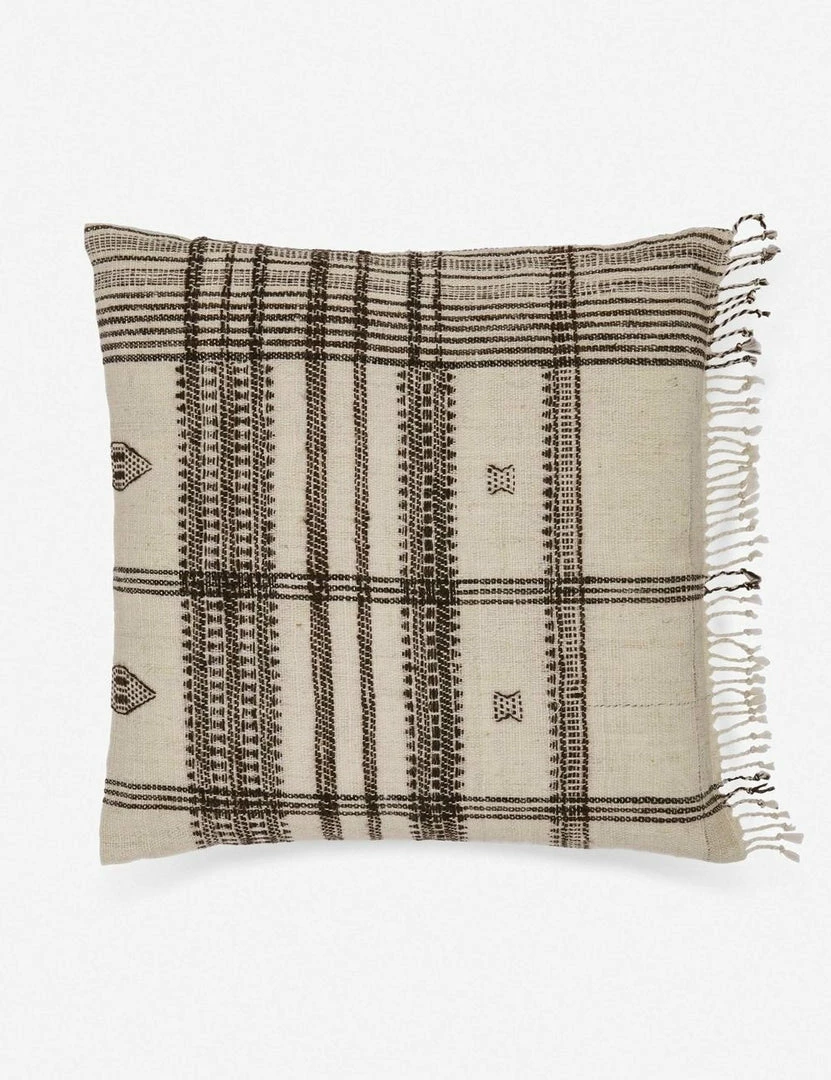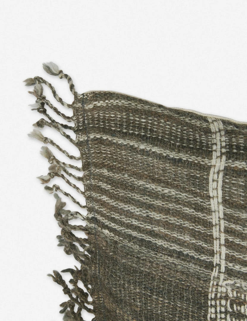 Woven with naturally dyed wool, this throw pillow combines classic stripes and intricate geometric patterns throughout. Finished with knotted fringe, this handmade decorative pillow takes bohemian artisan appeal to the next level in any space.