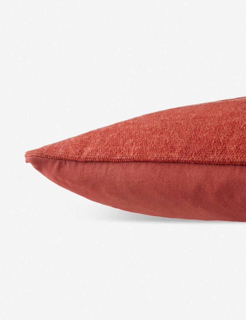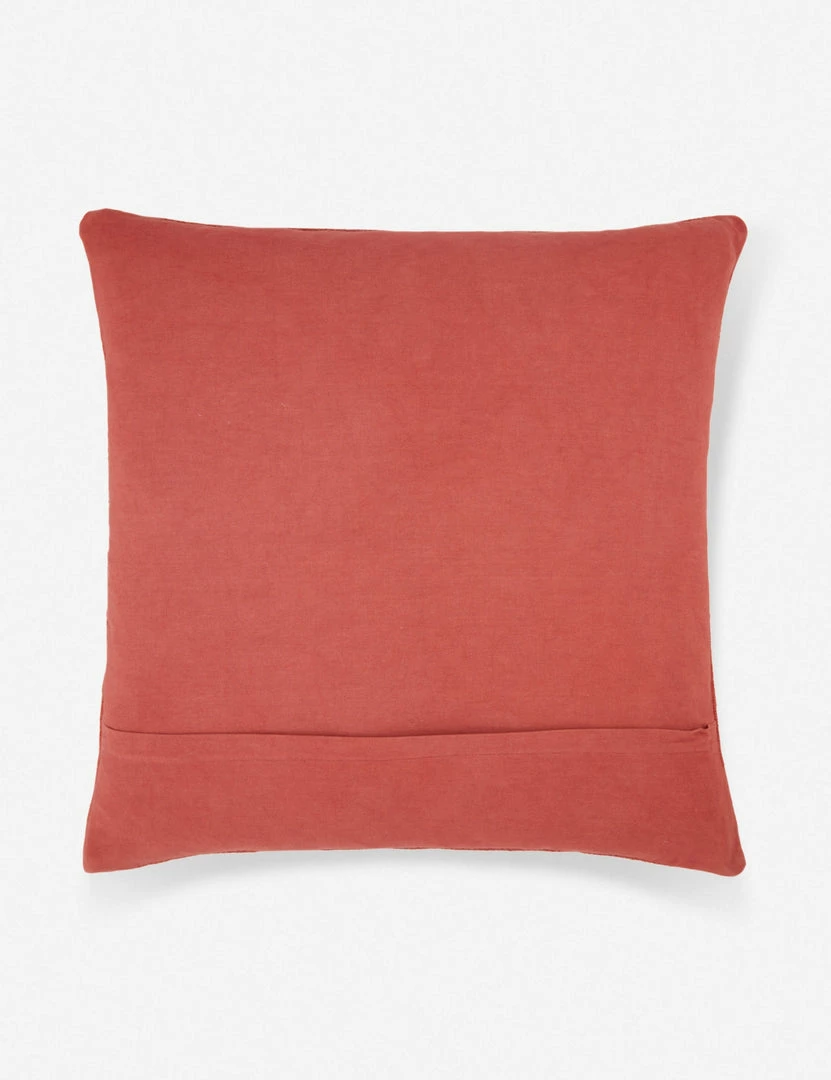 Mix and match this collection of decorative pillows, each featuring an arabesque pattern on a solid woven cotton front, in your bedroom or living space. This throw pillow, in a washed-out red hue, evokes the look of heirloom rugs.