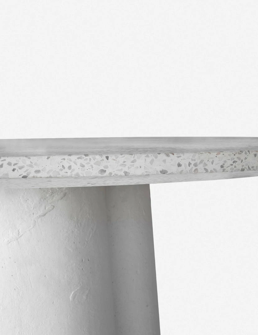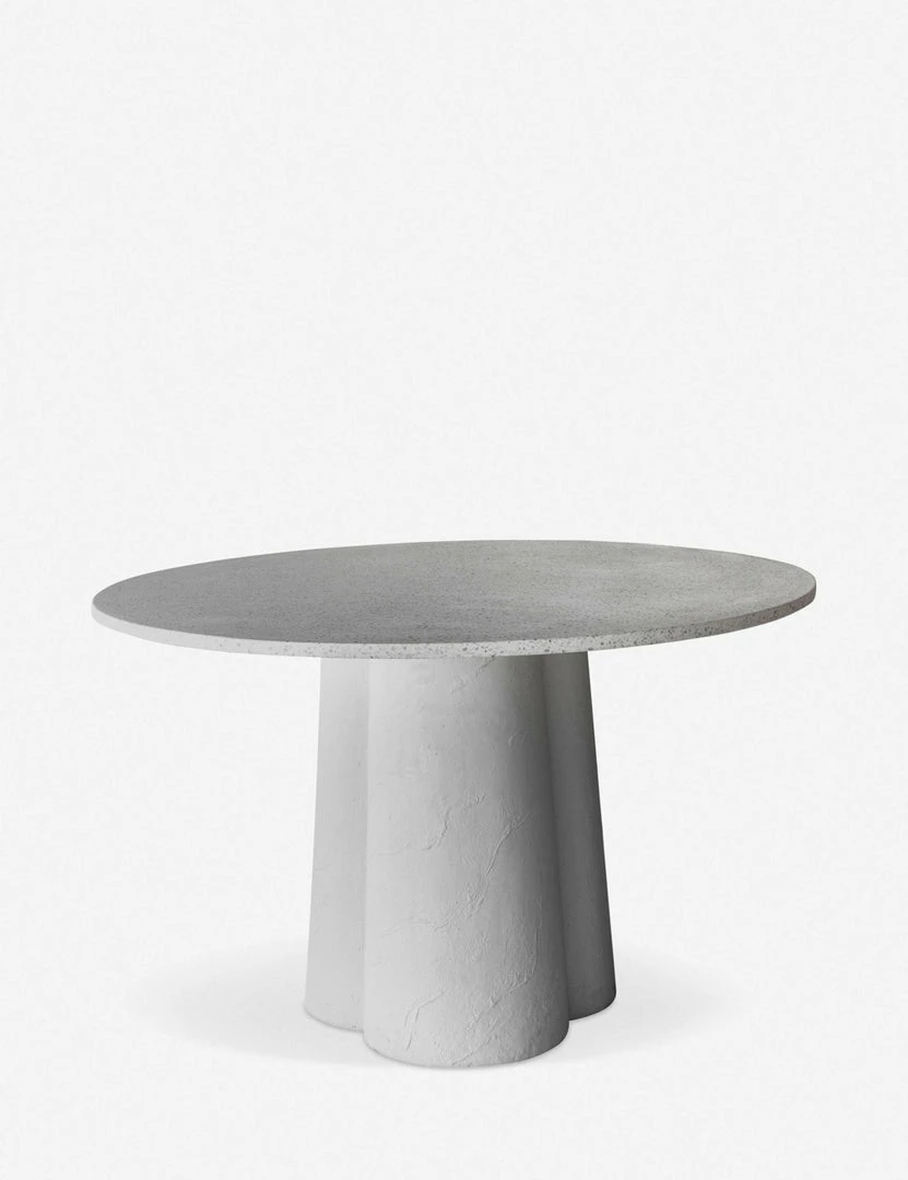 We love the sculptural flair this unique white dining table brings, whether styled in a chic dinette or on an al fresco patio. The polished terrazzo offers up a lively mineral texture while a chunky clover pedestal provides sturdy support with a tactile finish for fresh appeal all year round.